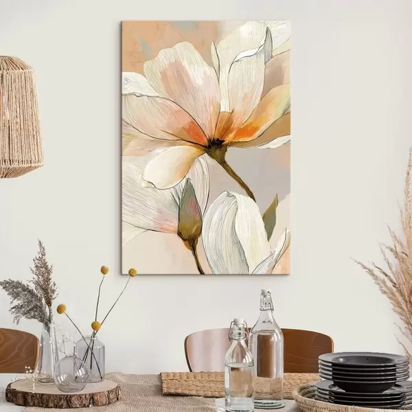 Gemälde Blumenarrangement in Pfirsich- und Blautönen Art. s47969