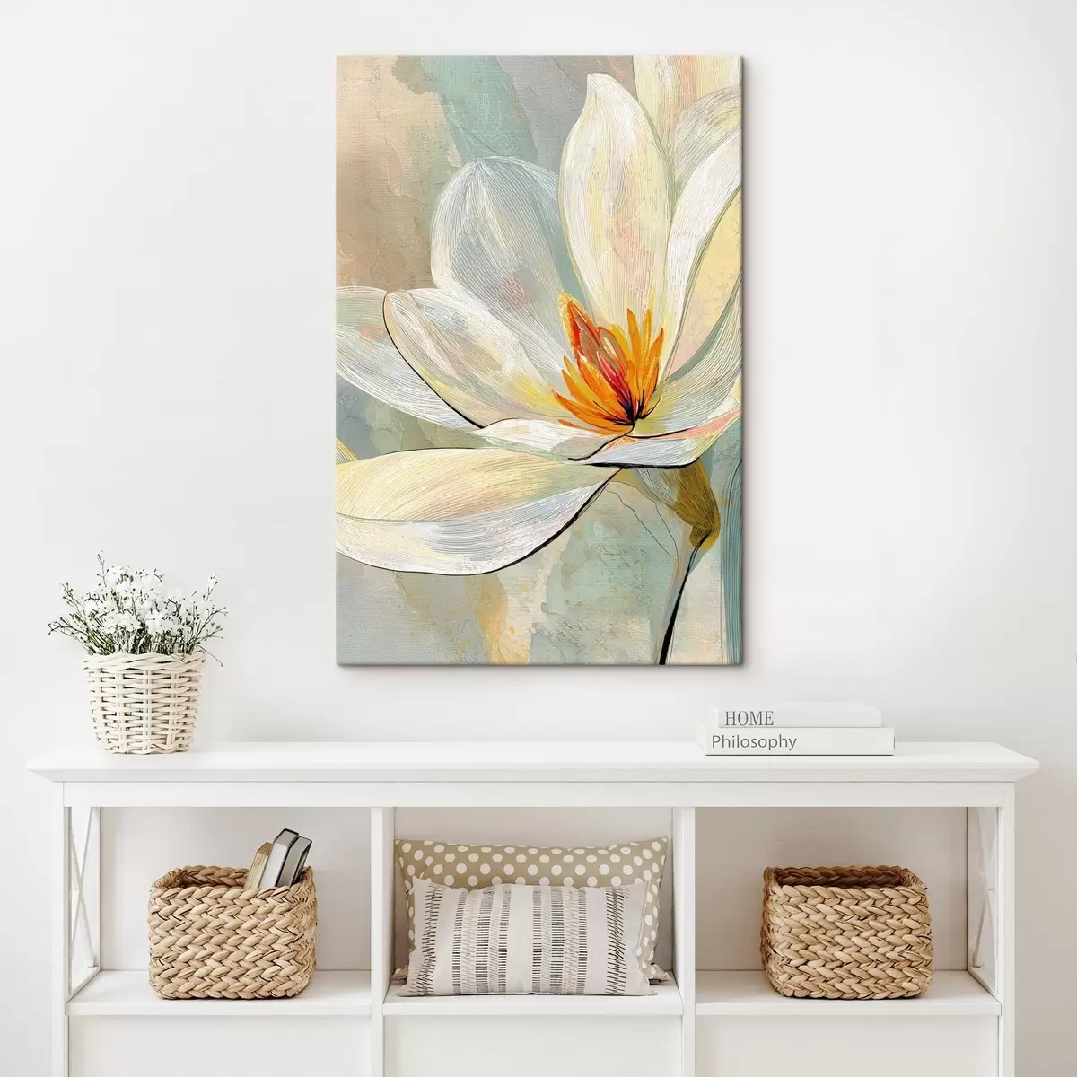 Gemälde Abstrakte Magnolien in Pastelltönen mit Schwerpunkt auf linearen Grafiken Art. s47970