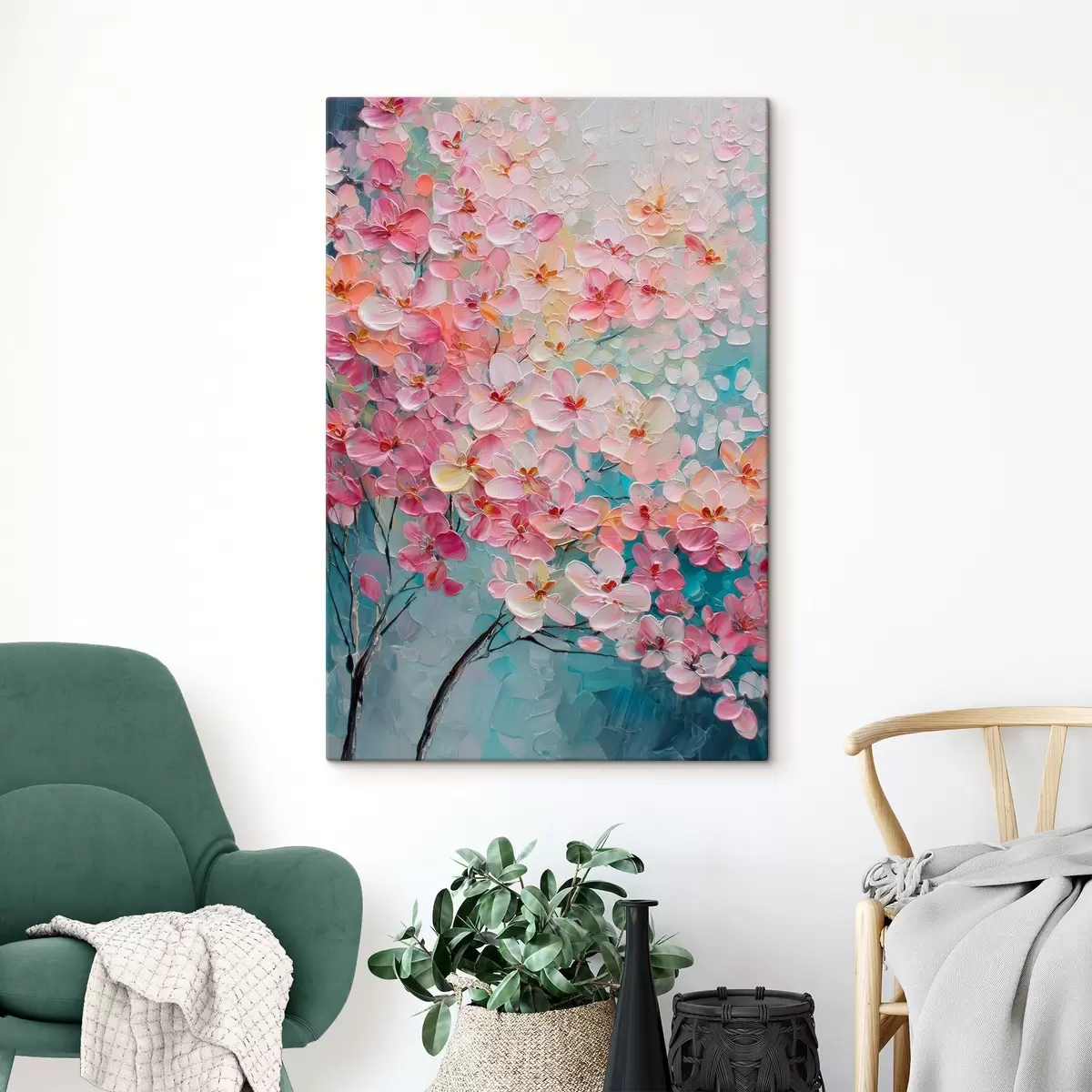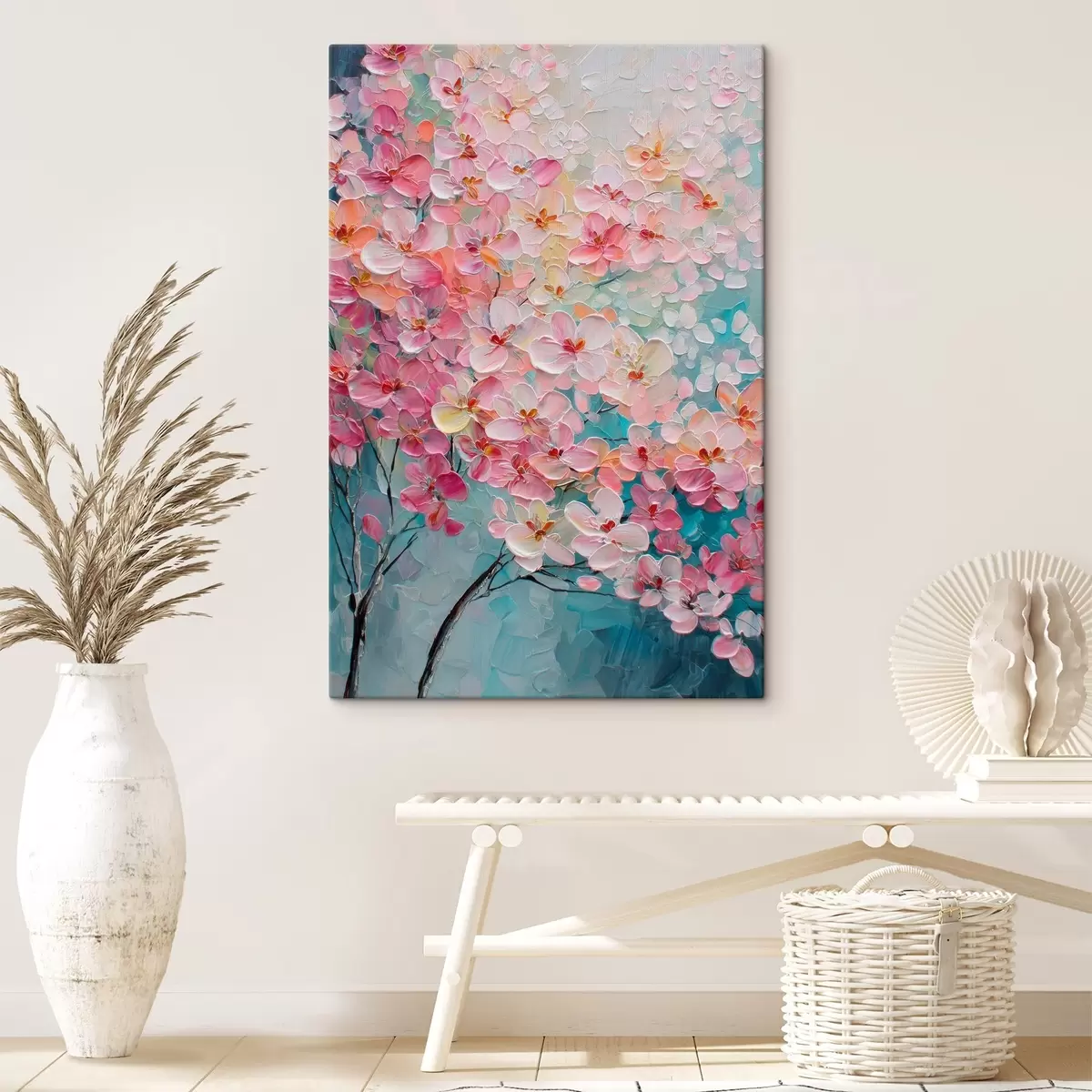 Gemälde Zweig mit rosa Blüten auf blauem Hintergrund im Stil eines Ölgemäldes Art. s47987