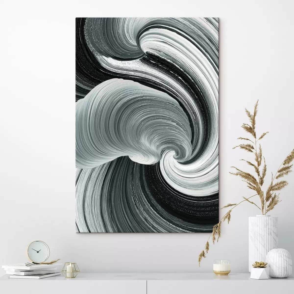 Gemälde Bewegungsenergie: Schwarz-Weiß-Abstraktes im Stil eines Ölgemäldes Art. s47990