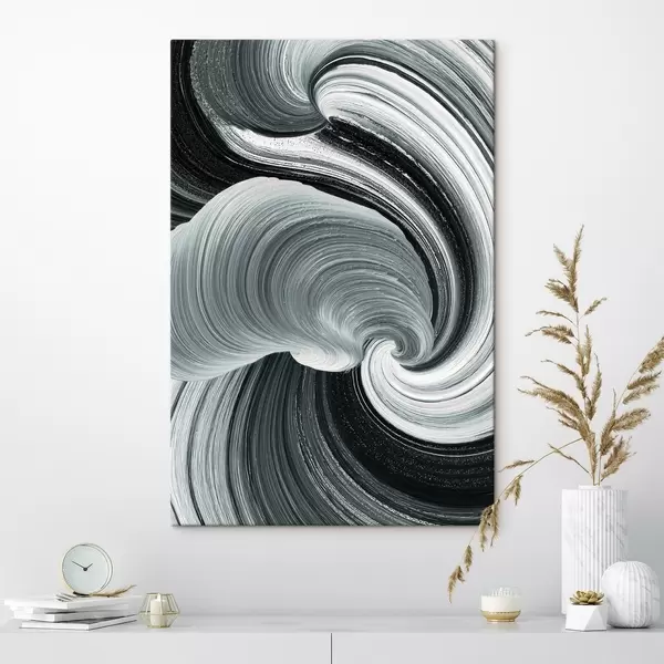 Fototapete Bewegungsenergie: Schwarz-Weiß-Abstraktes im Stil eines Ölgemäldes s47990