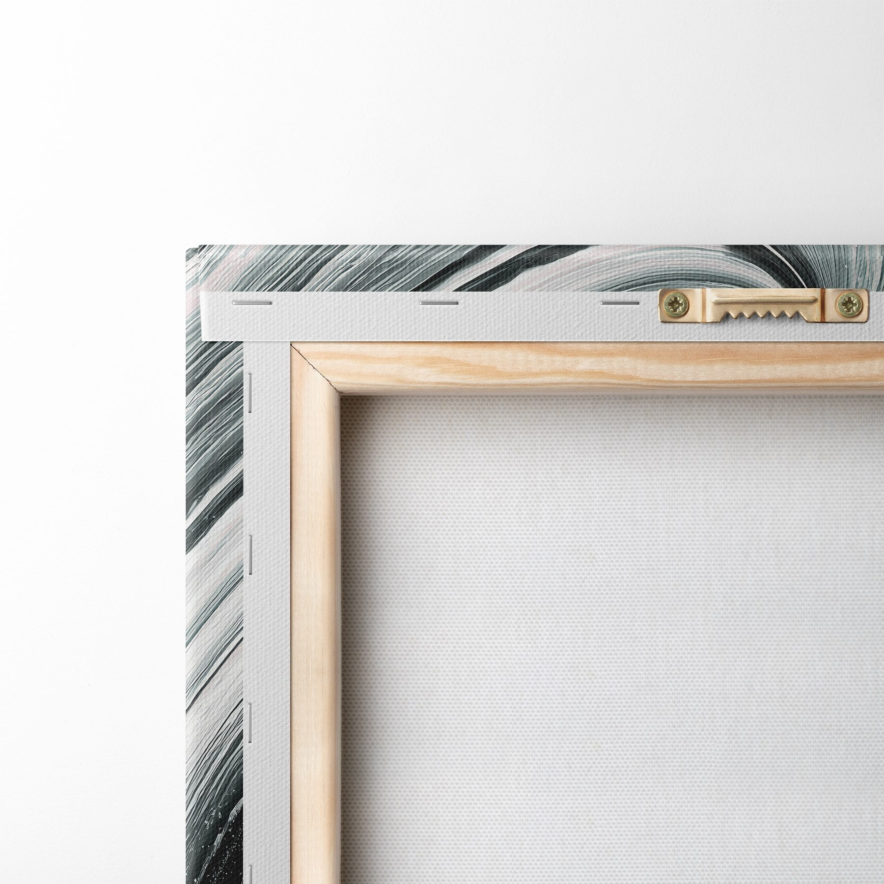Um die Leinwand auf Keilrahmen zu spannen, ohne das Bild zu beschädigen, verwenden wir ein gespiegeltes Bild.