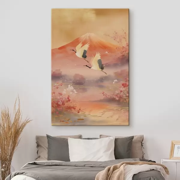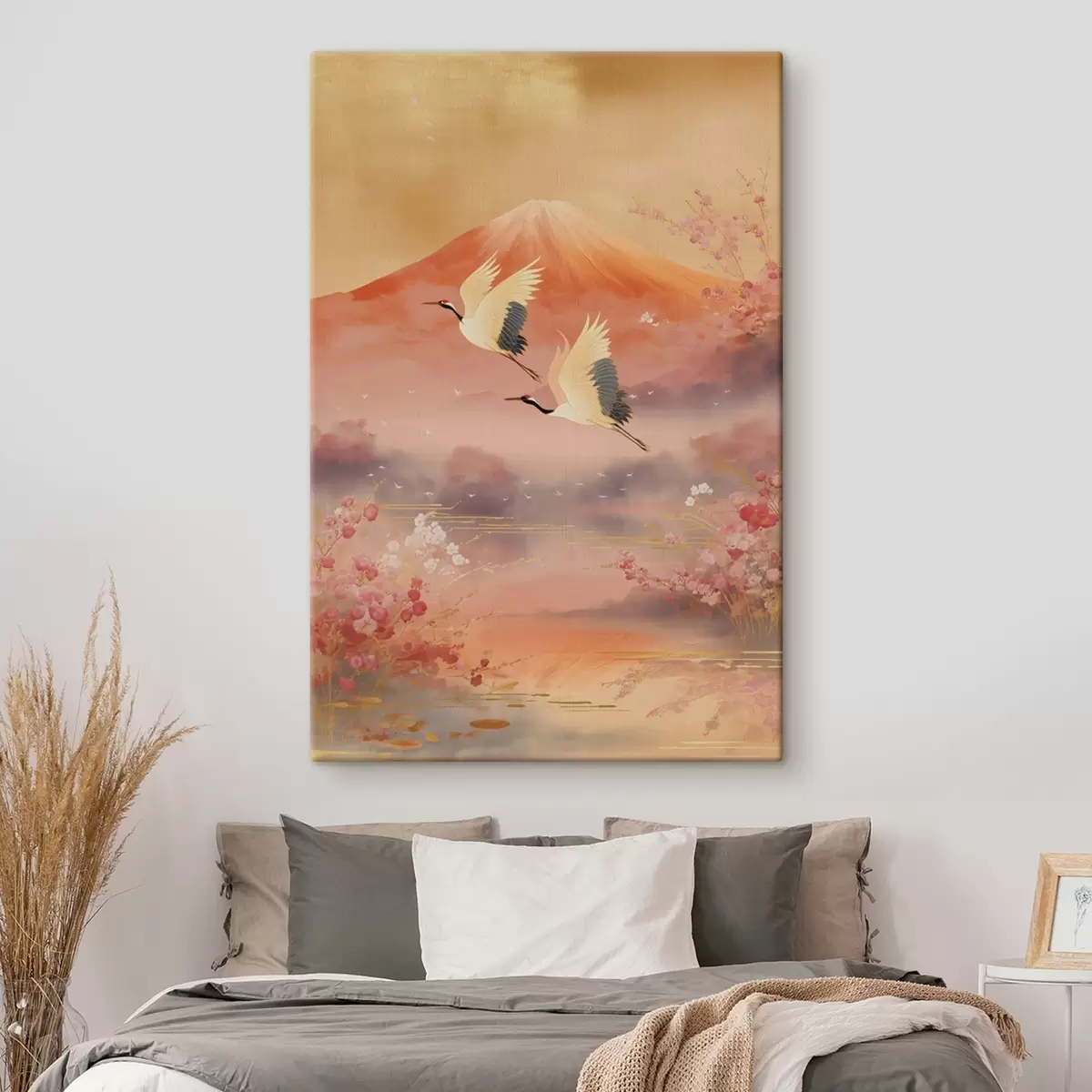 Gemälde Traditionelles orientalisches Motiv mit Kirschblüten und Kranichen Art. s47991