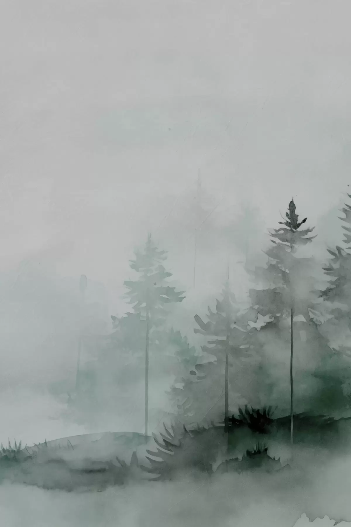 Fototapete Tannenbäume im Wald, Aquarellimitation s47998