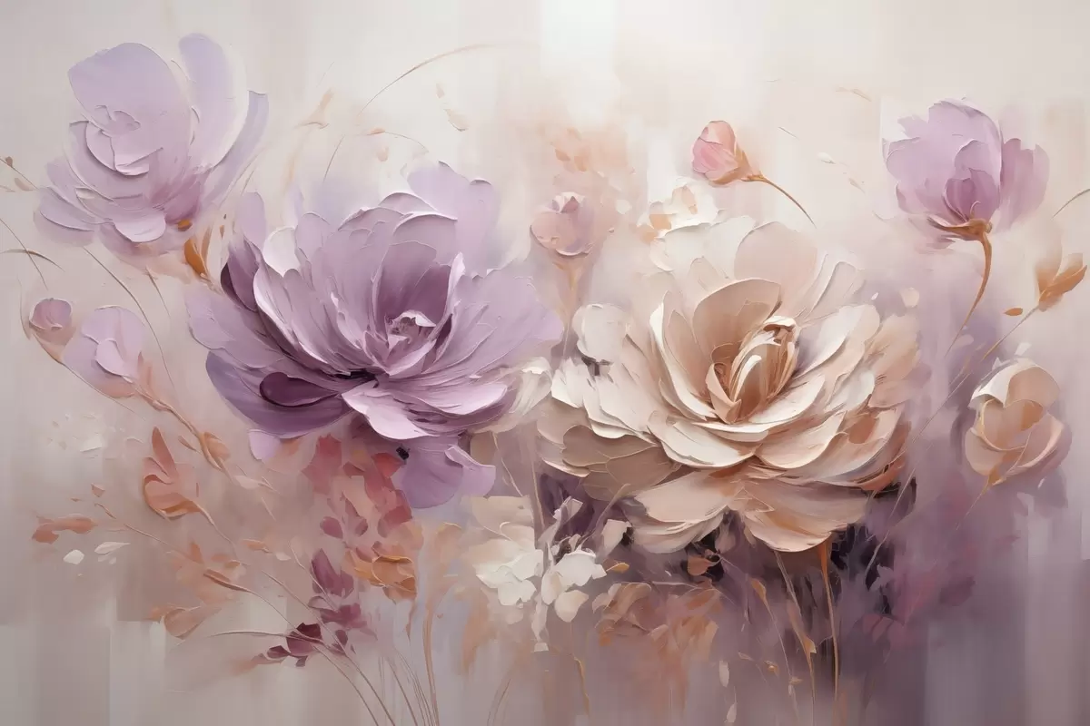 Fototapete Zarte große Blumen, Ölgemälde-Imitation s48002