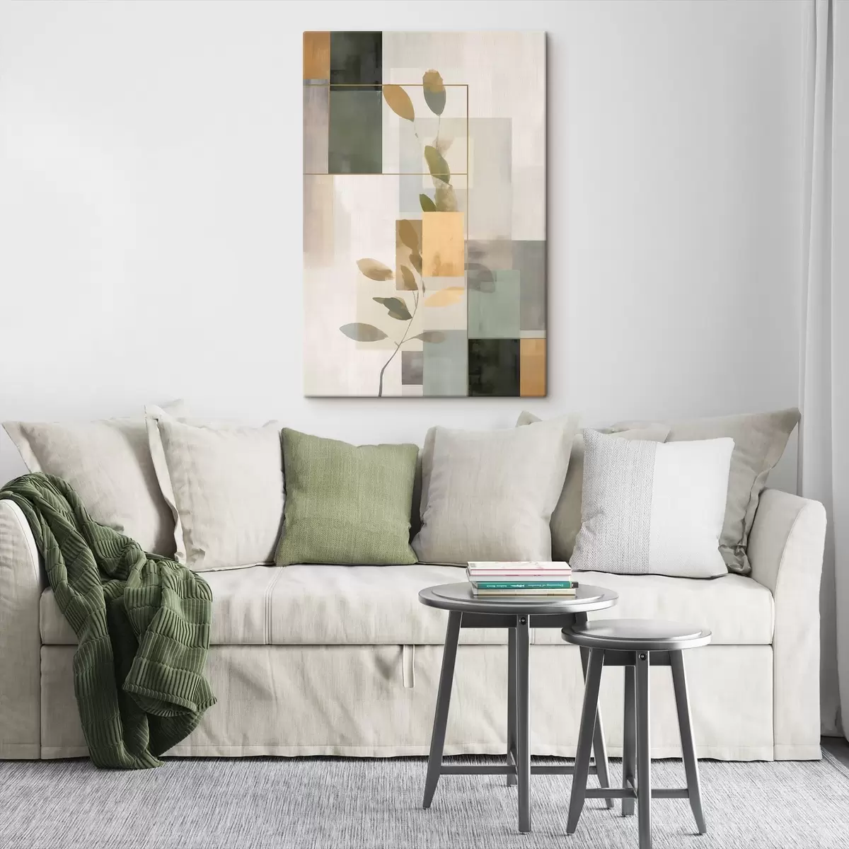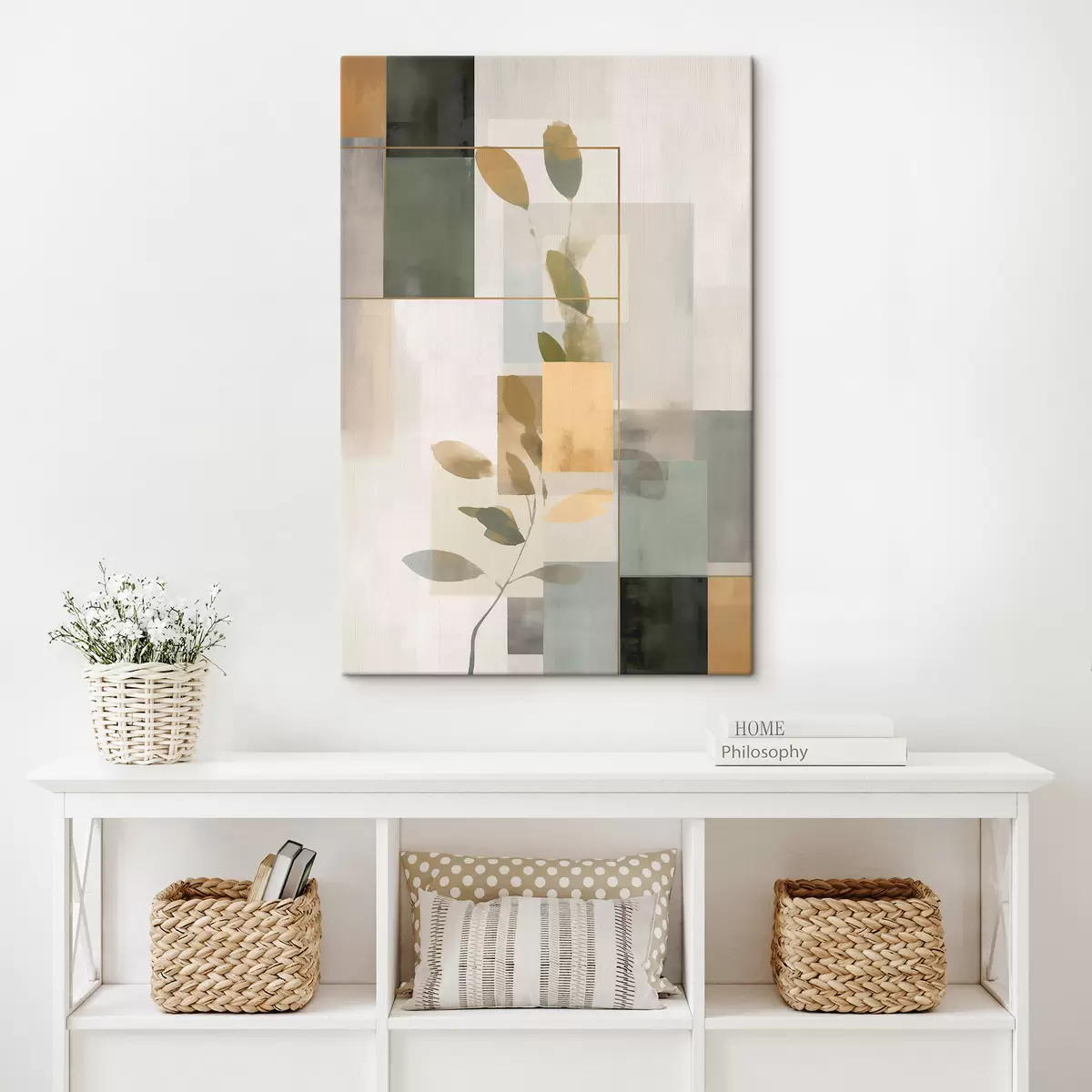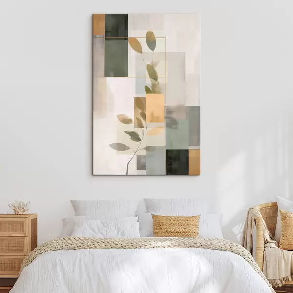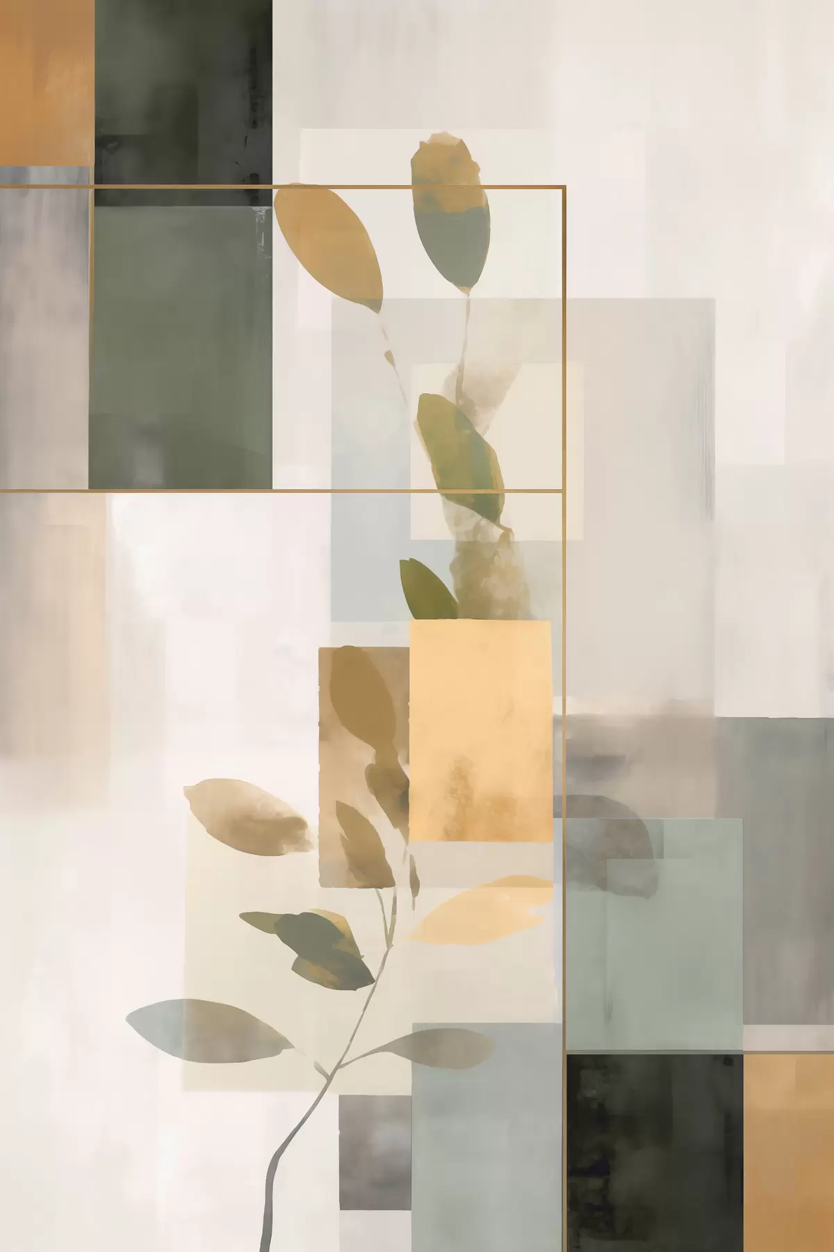 Gemälde Geometrische Abstraktion mit Zweigen und Blättern Art. s48020