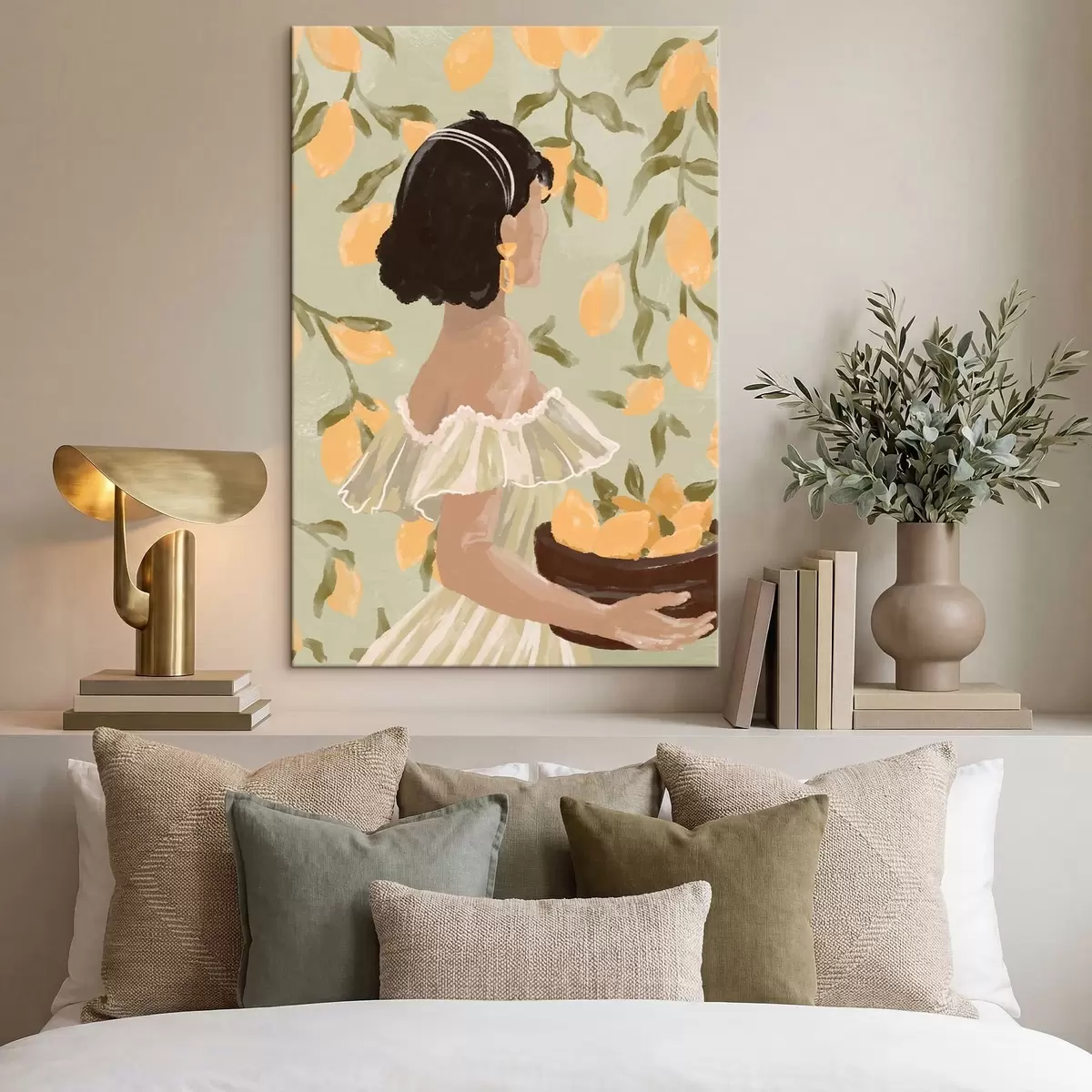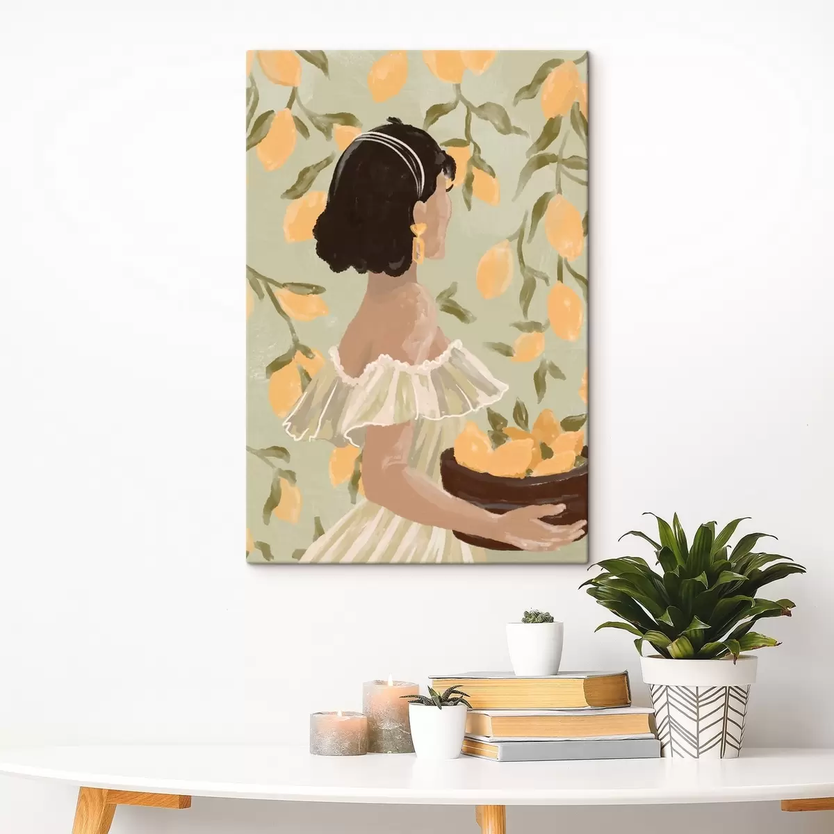 Gemälde Frau hält eine Schüssel mit Zitronen an den Zweigen Art. s48023
