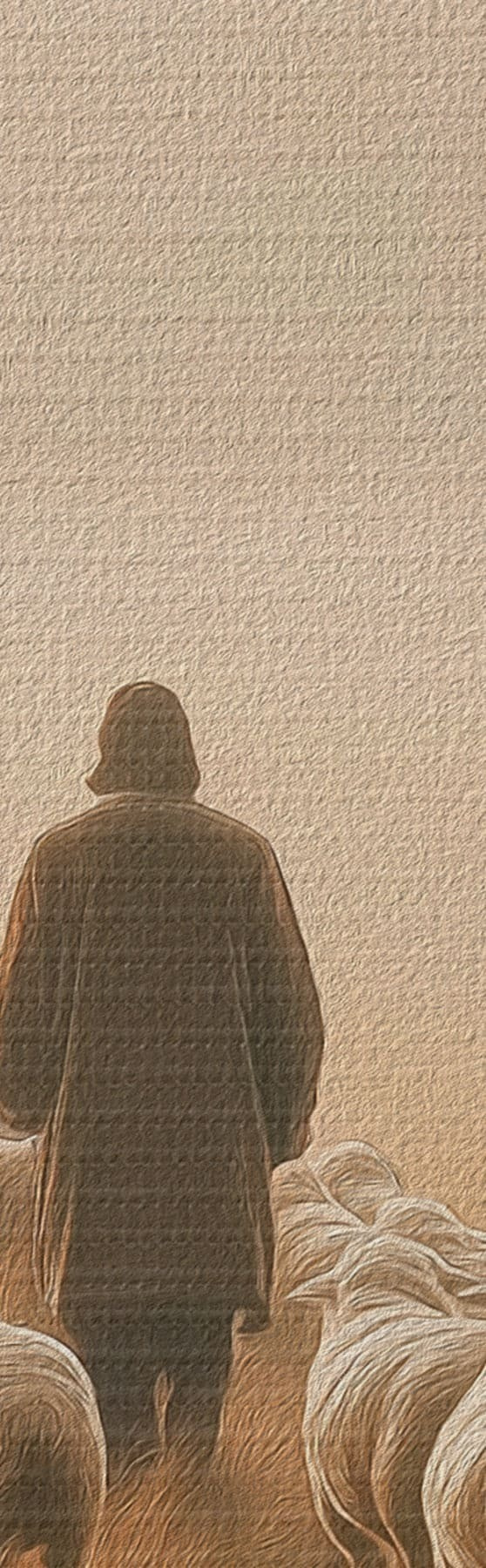 Fototapete Hirte, der mit seiner Schafherde auf einer offenen Weide spazieren geht s48077