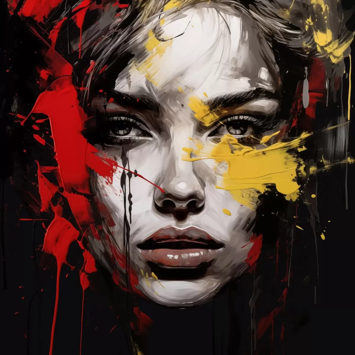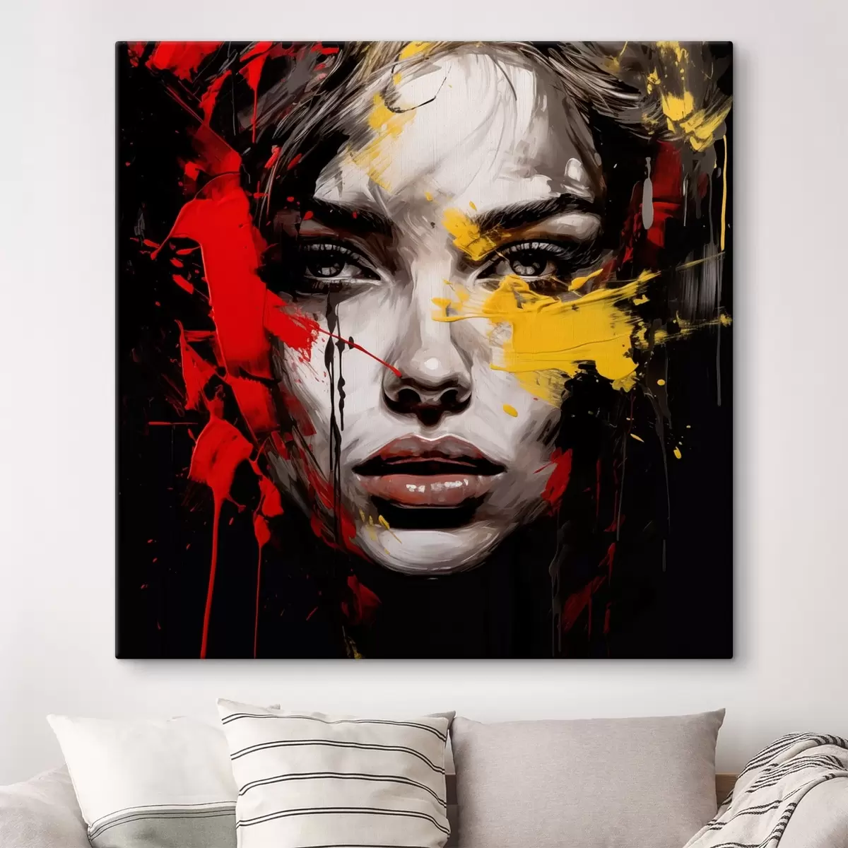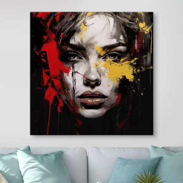 Gemälde Frauenporträt mit roten und gelben Strichen Art. s48089