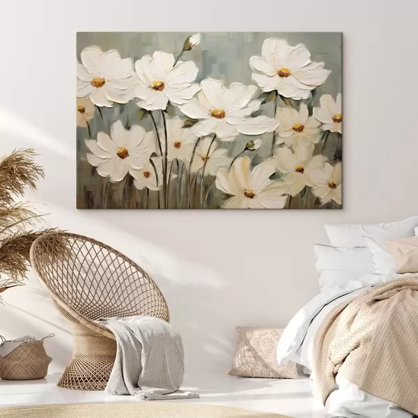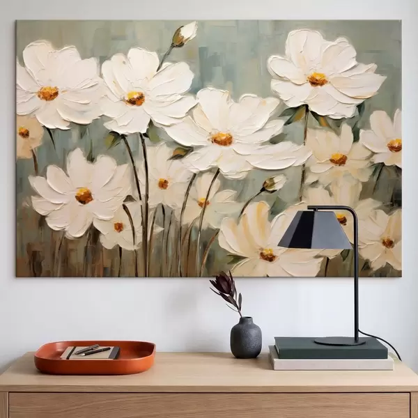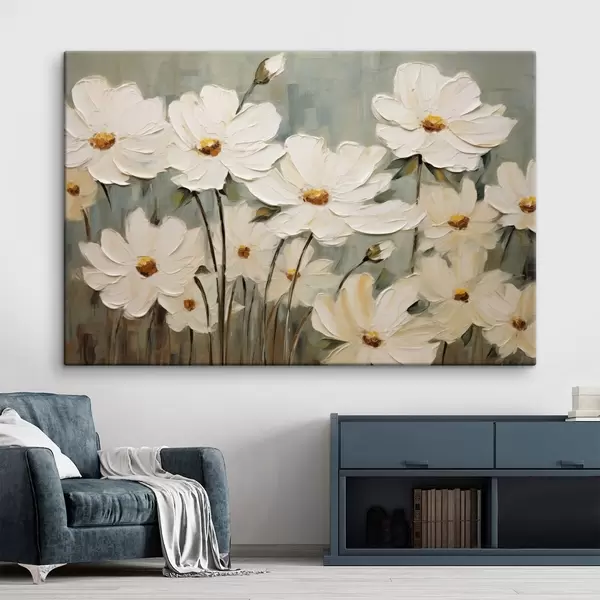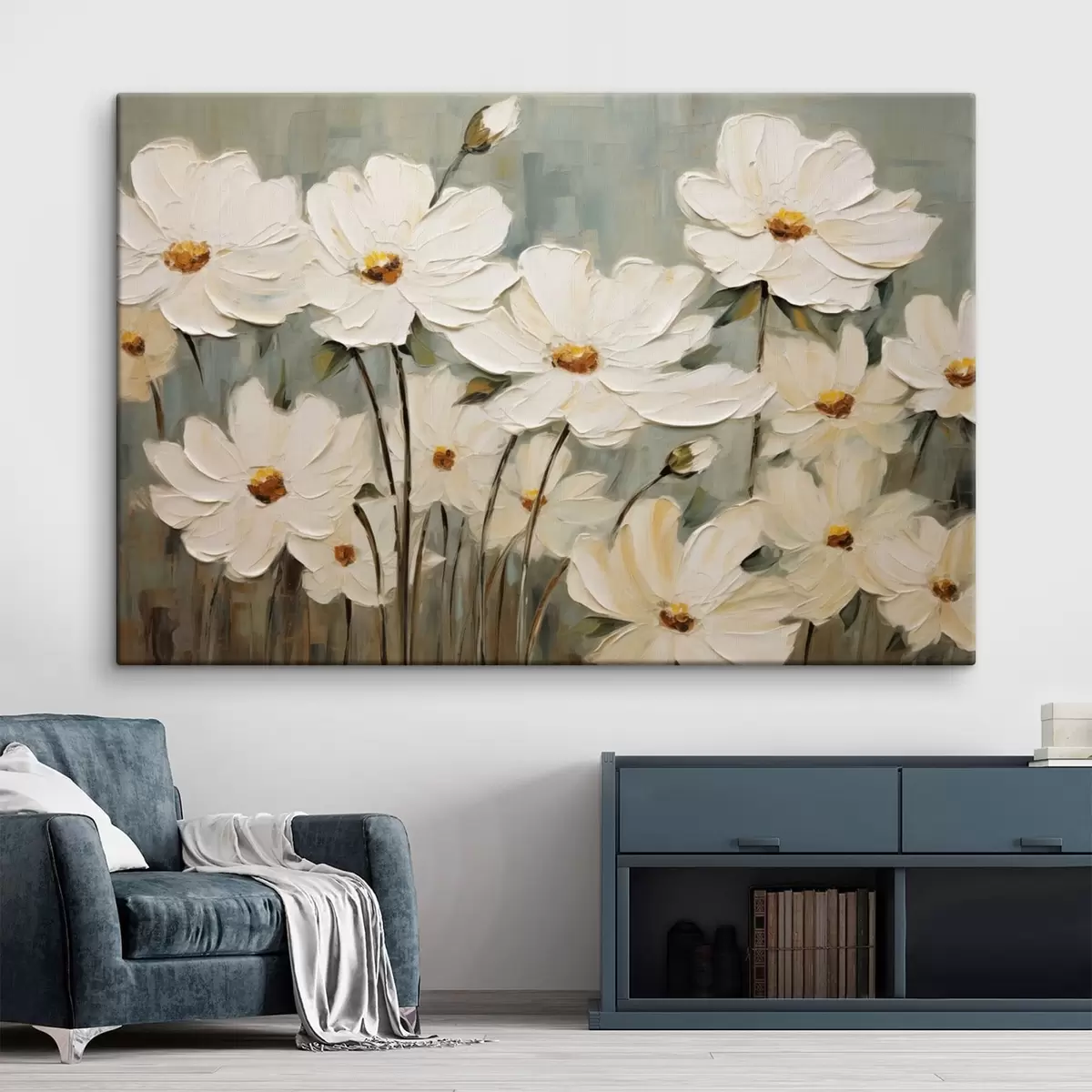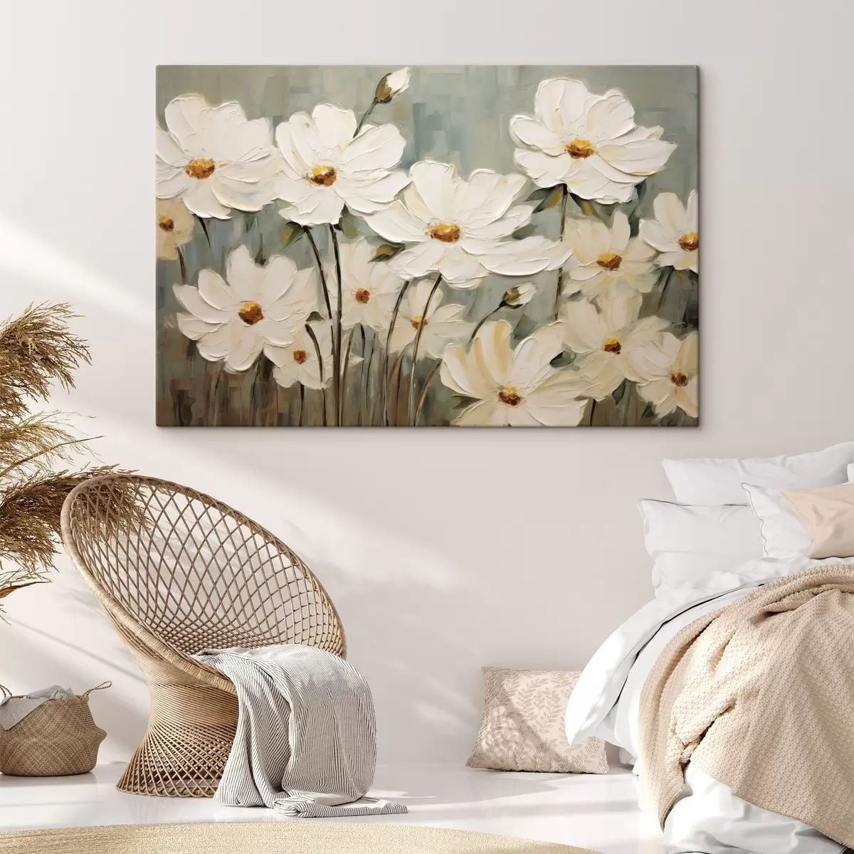 Gemälde Weiße Blumen auf strukturiertem Hintergrund, Pinselstriche Art. s48094