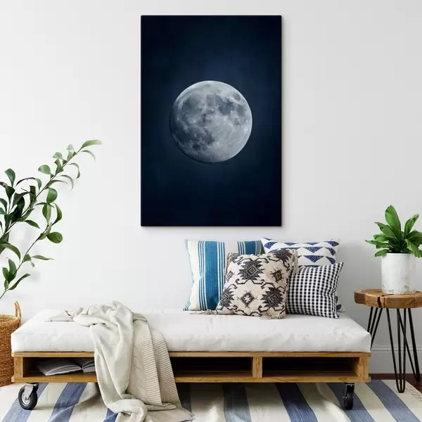 Gemälde Vollmond inmitten eines tief marineblauen strukturierten Hintergrunds Art. s48122