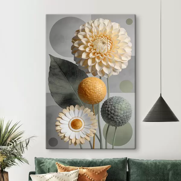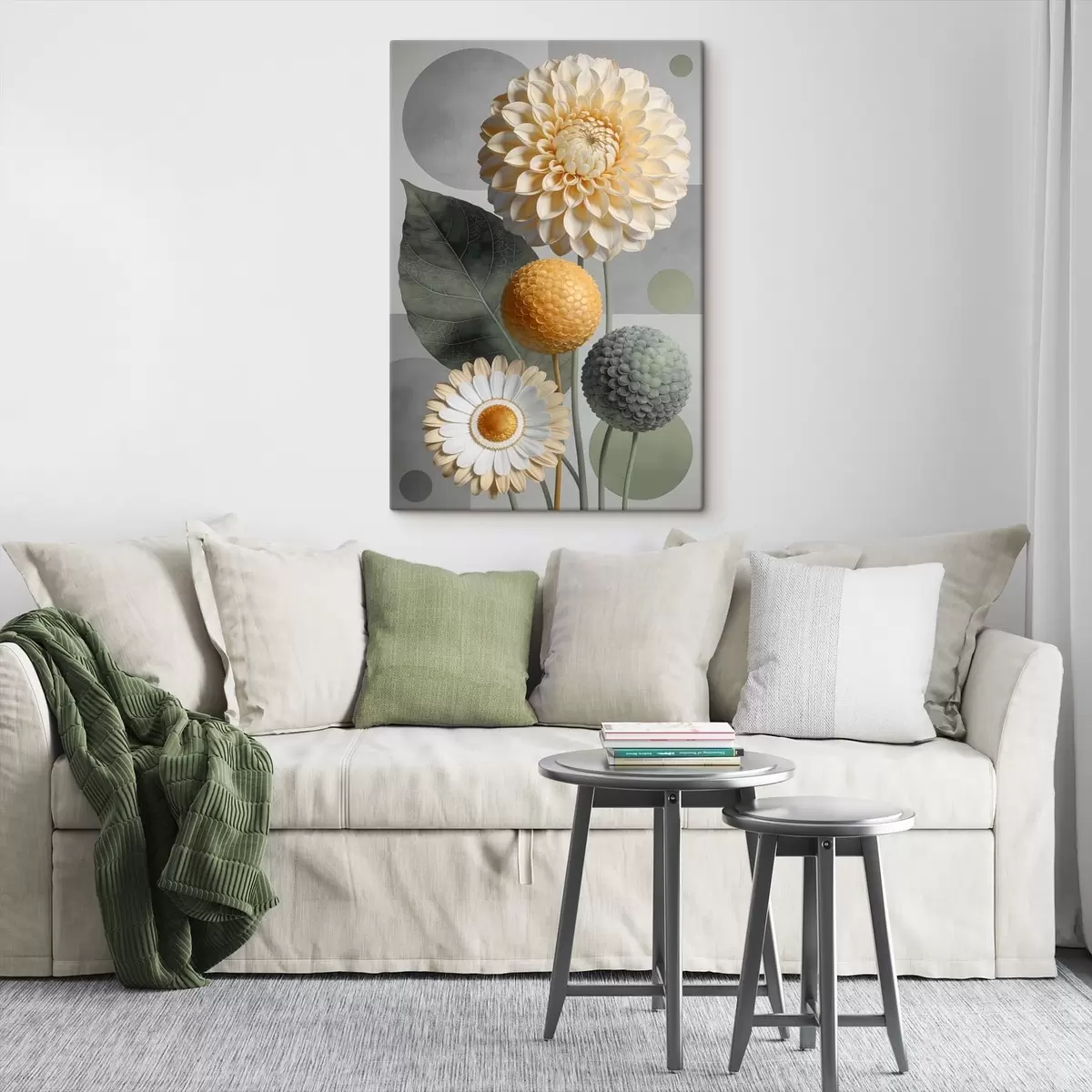 Gemälde Große abstrakte Blumen mit geometrischen Elementen Art. s48178