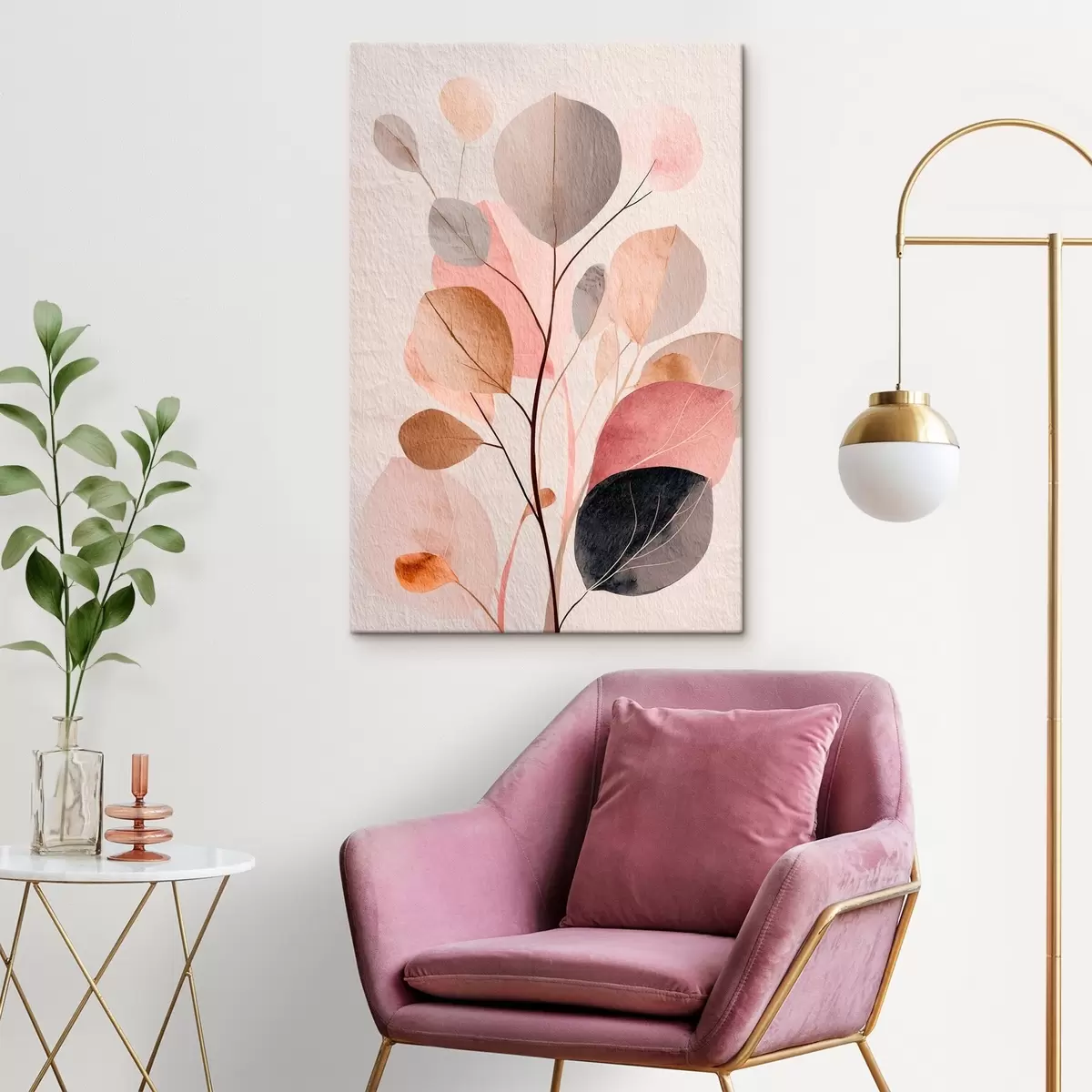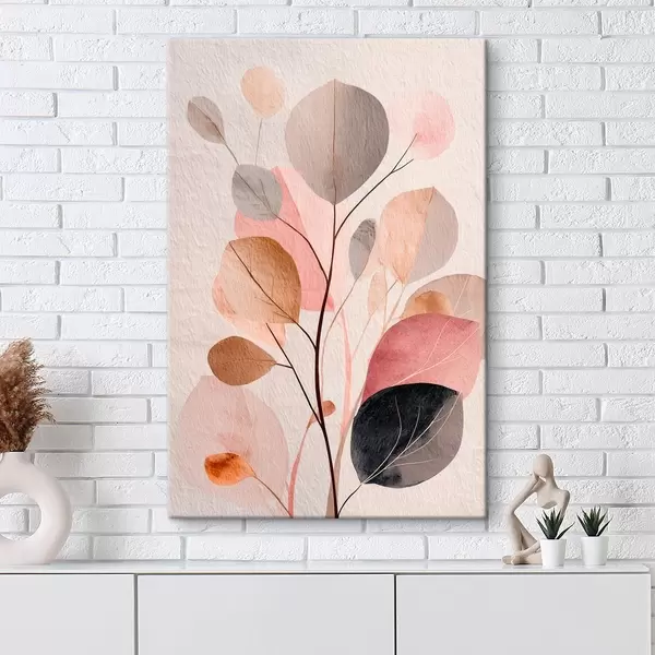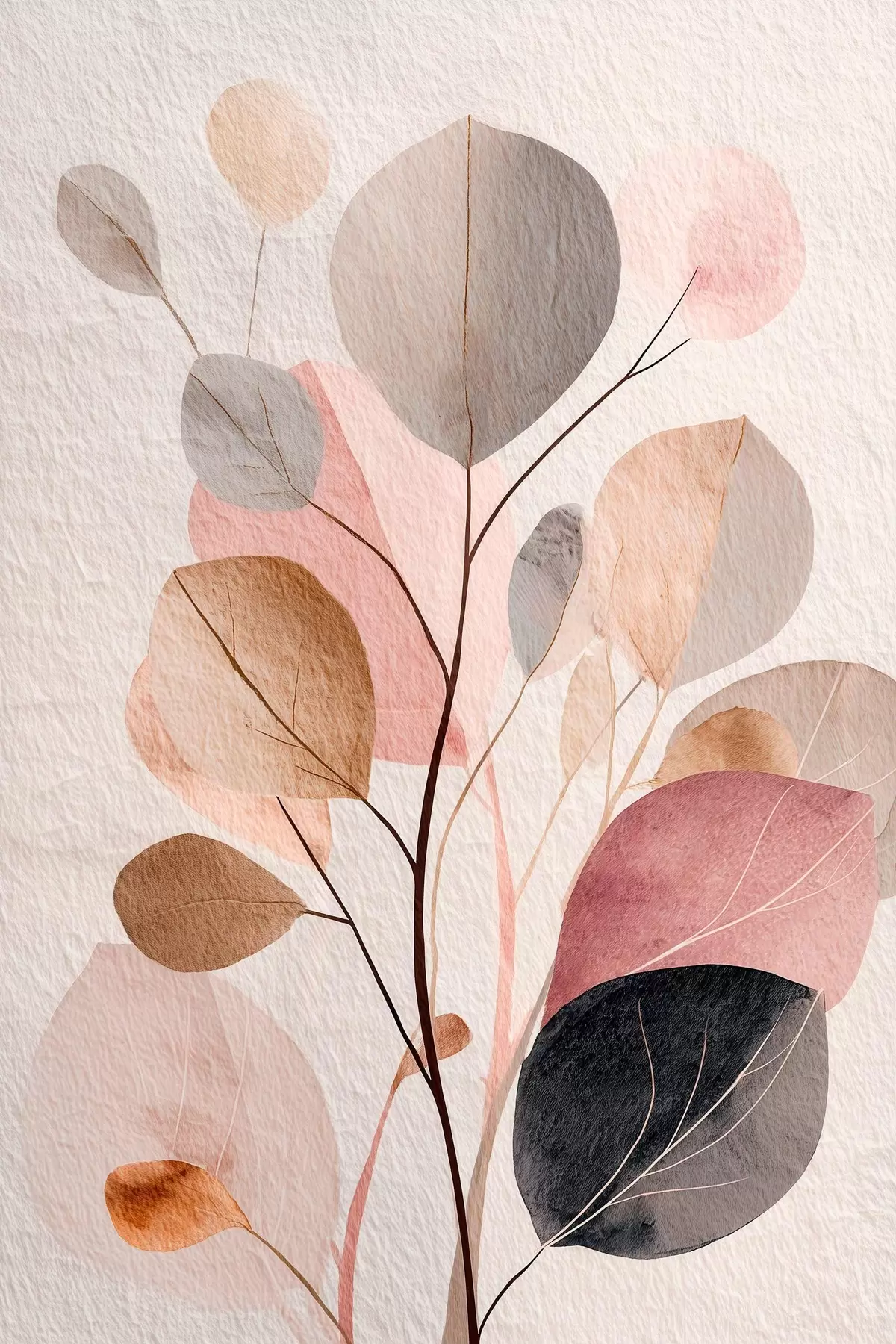 Gemälde Abstraktes Zweigmotiv mit runden Blättern in warmen Beige- und Korallentönen Art. s48187