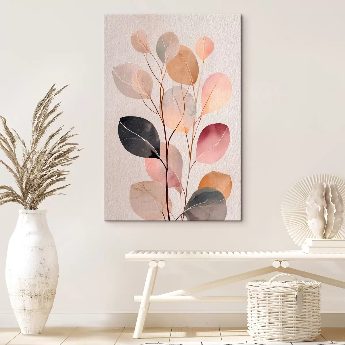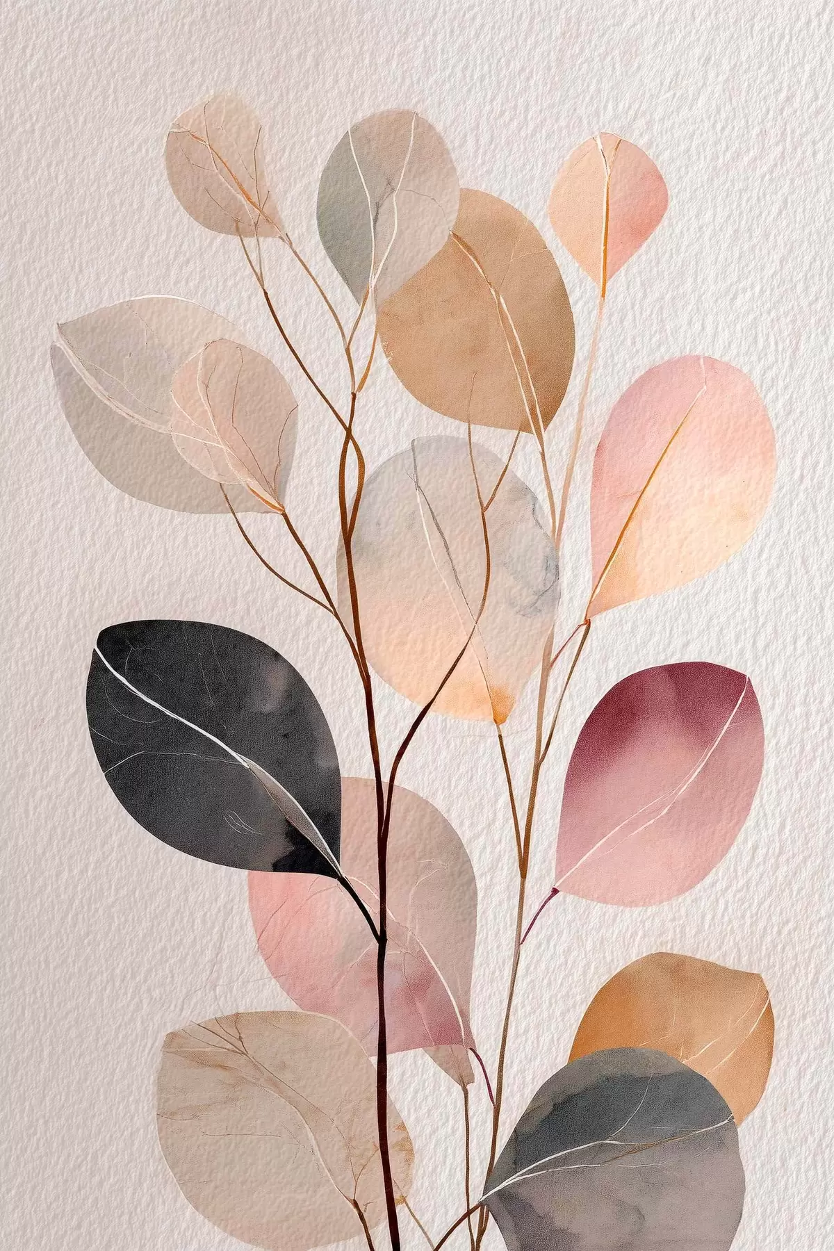 Gemälde Abstrakter Zweig in Beige- und Korallentönen im Aquarellstil Art. s48188