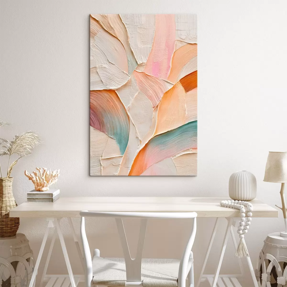 Gemälde Abstrakter Hintergrund mit dynamischen Pinselstrichen in Pfirsich- und Blautönen Art. s48202