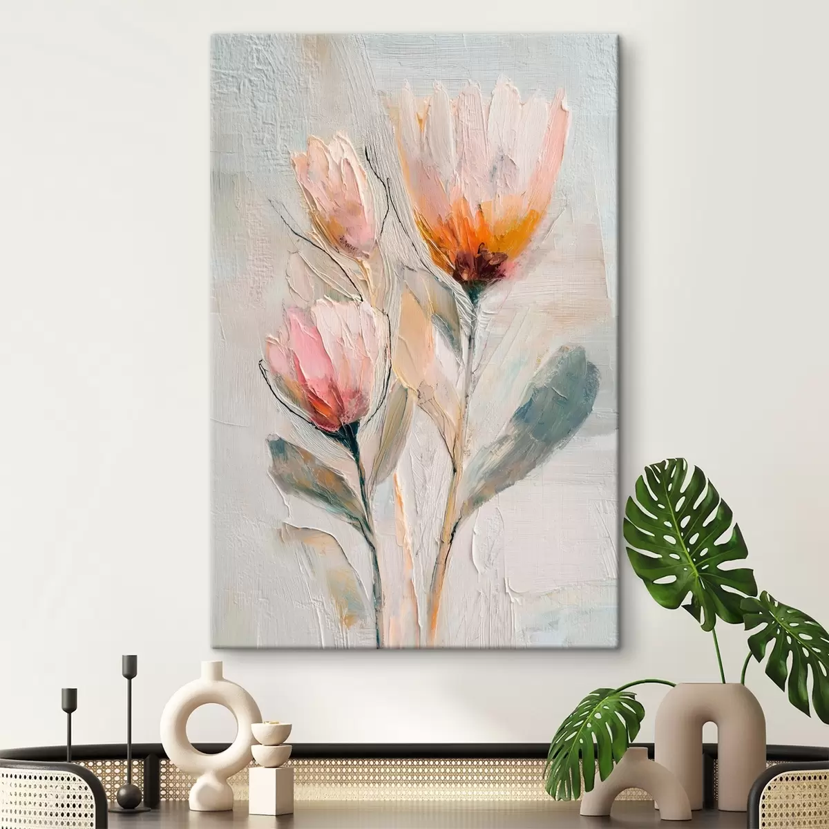 Gemälde Strauß aus Proteablumen mit kräftigem Pinselstrich-Effekt Art. s48206
