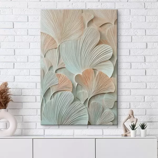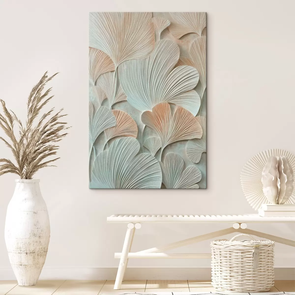Gemälde Stilisierte Ginkgo-Biloba-Blätter mit plastischer Struktur in Pastelltönen Art. s48209