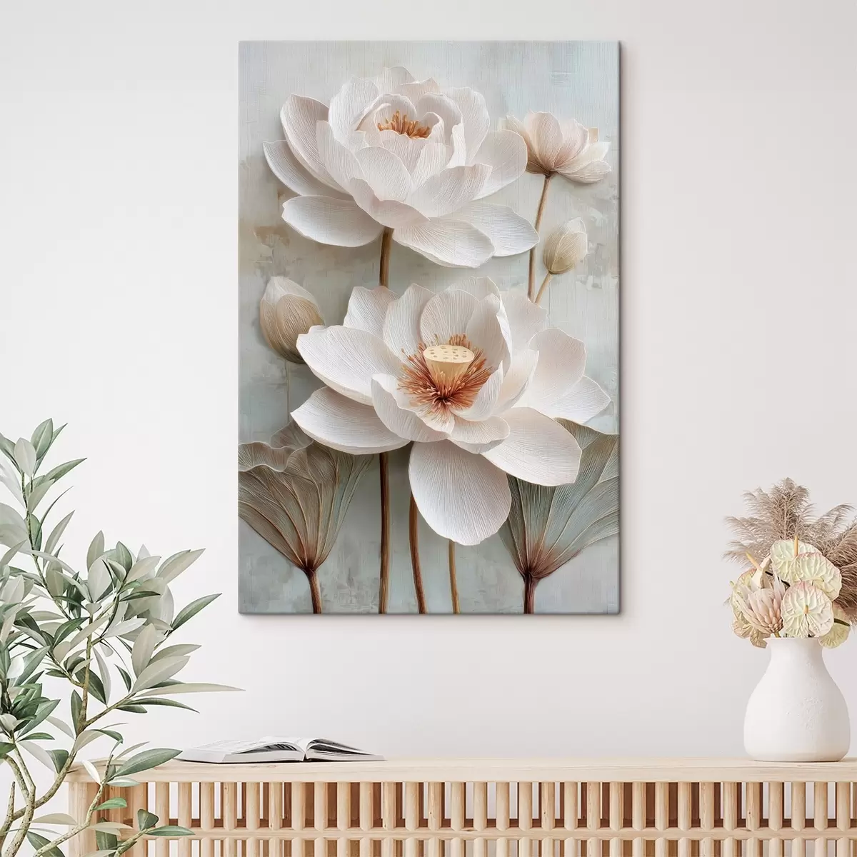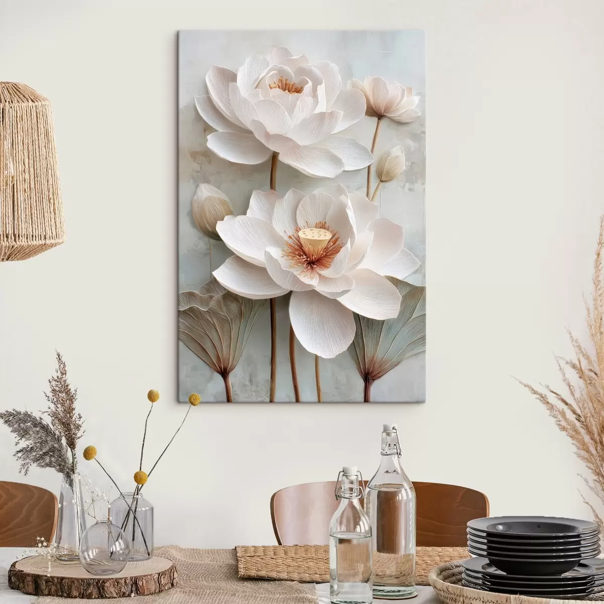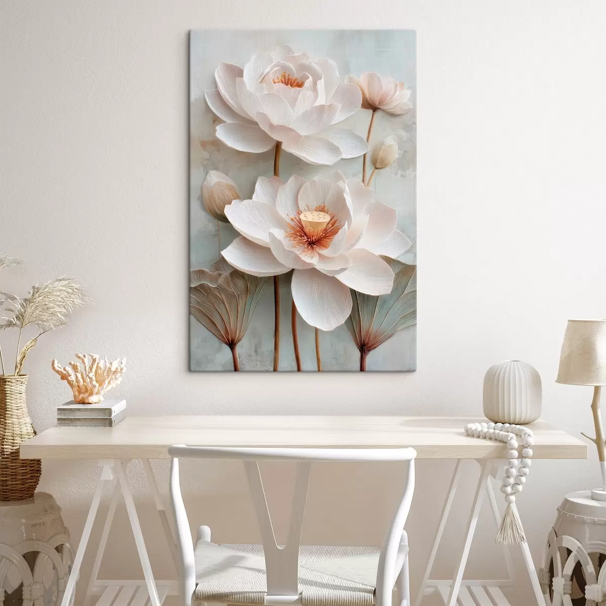 Gemälde Lotusblumen in zarten Pastelltönen im Ölgemälde-Stil Art. s48213