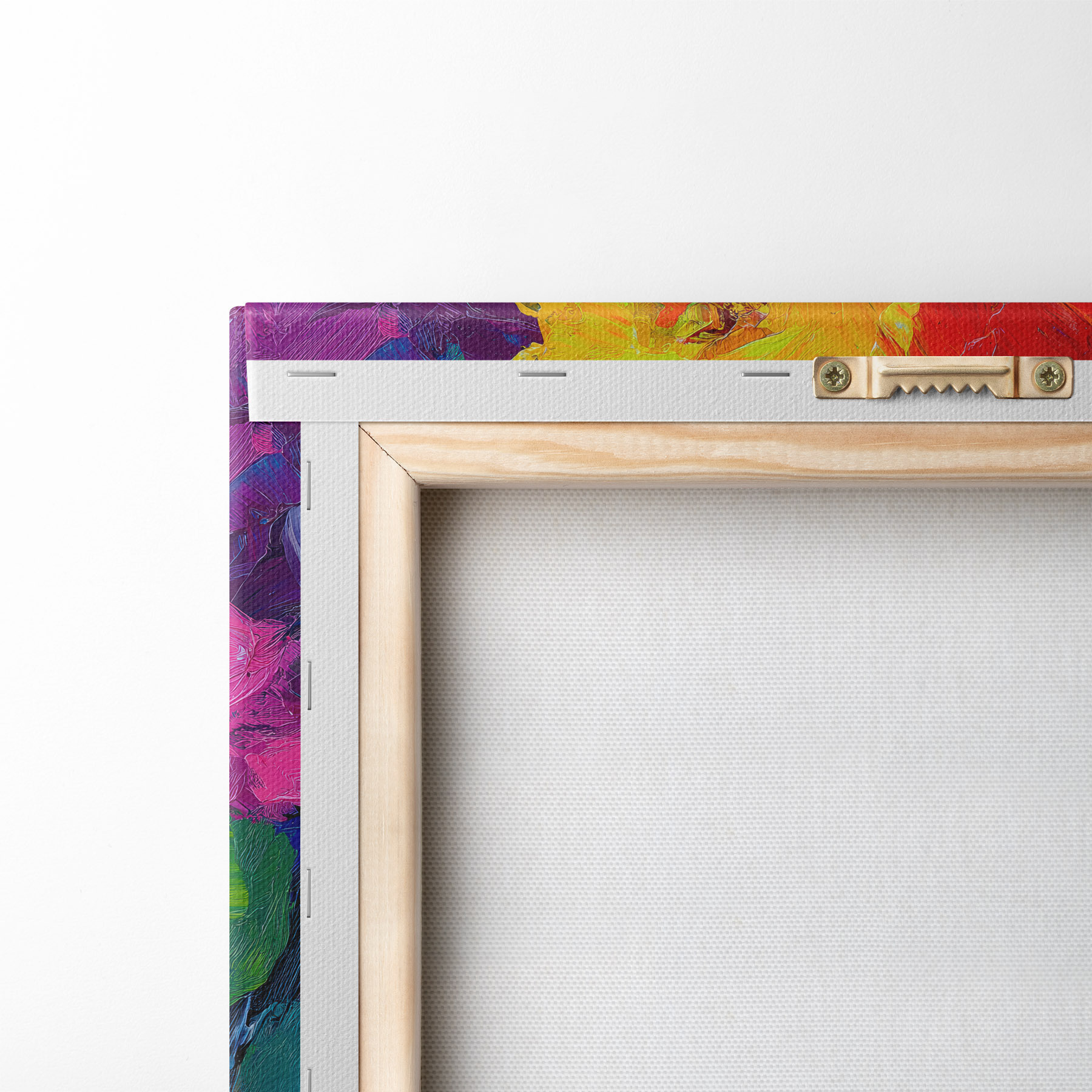 Um die Leinwand auf Keilrahmen zu spannen, ohne das Bild zu beschädigen, verwenden wir ein gespiegeltes Bild.