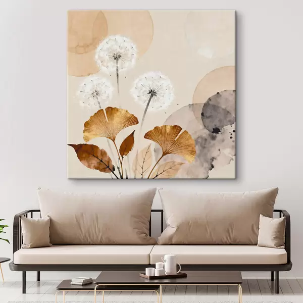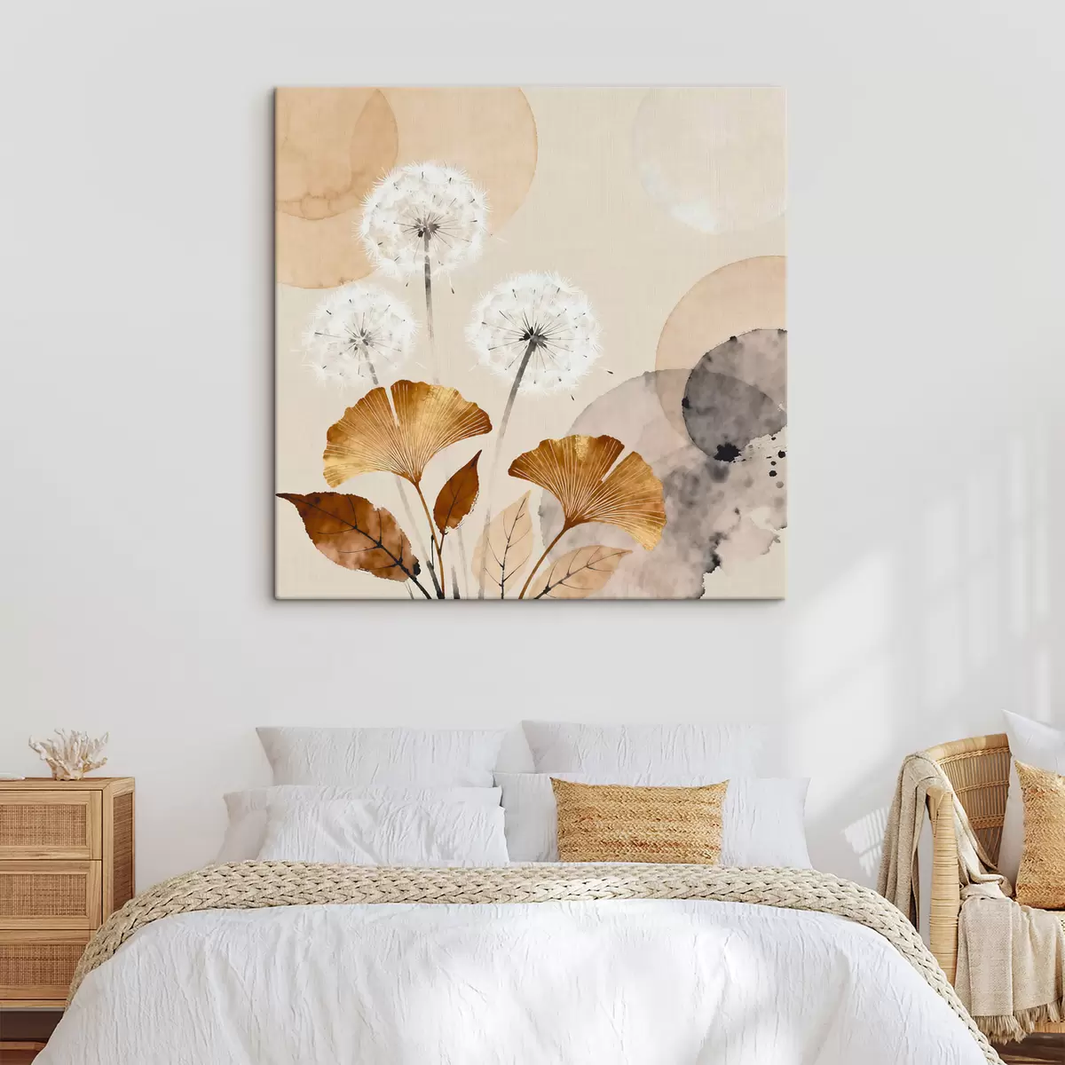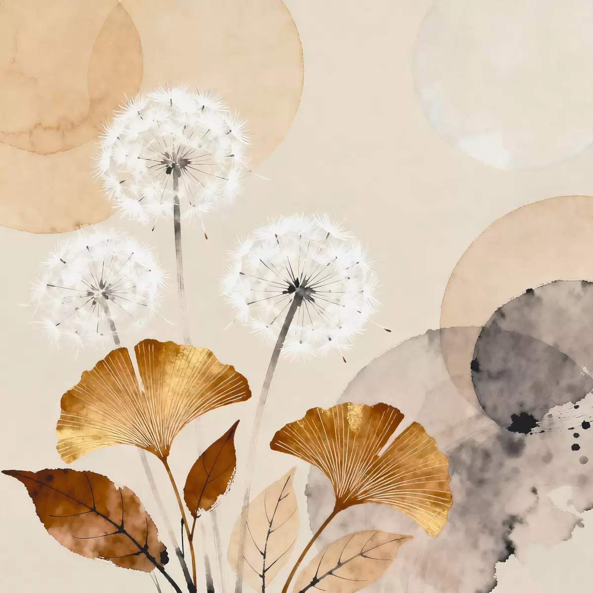 Gemälde Abstrakte Darstellungen von Löwenzahn und Ginkgoblättern Art. s48279