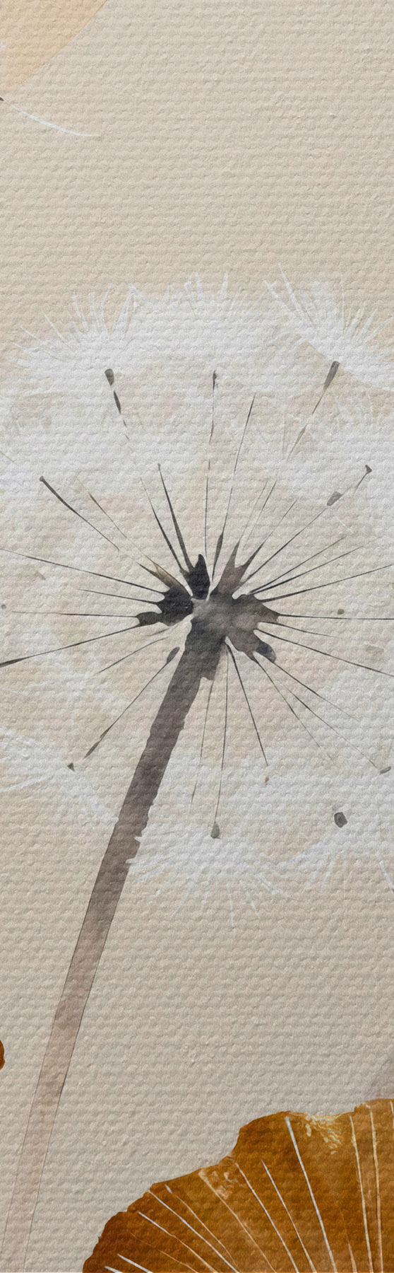 Fototapete Abstrakte Darstellungen von Löwenzahn und Ginkgoblättern s48279