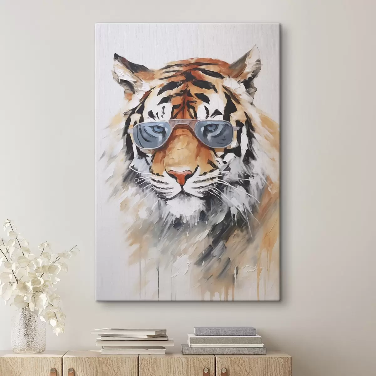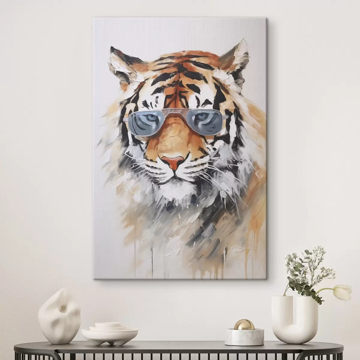 Gemälde Tiger mit Brille, Imitationsgemälde Art. s48319
