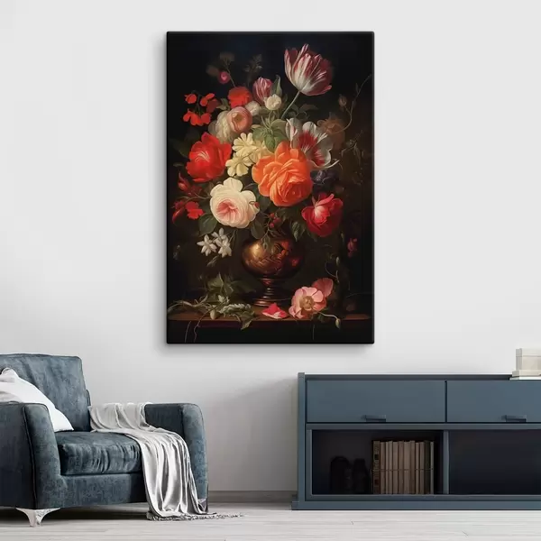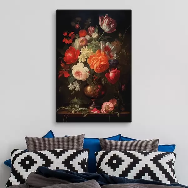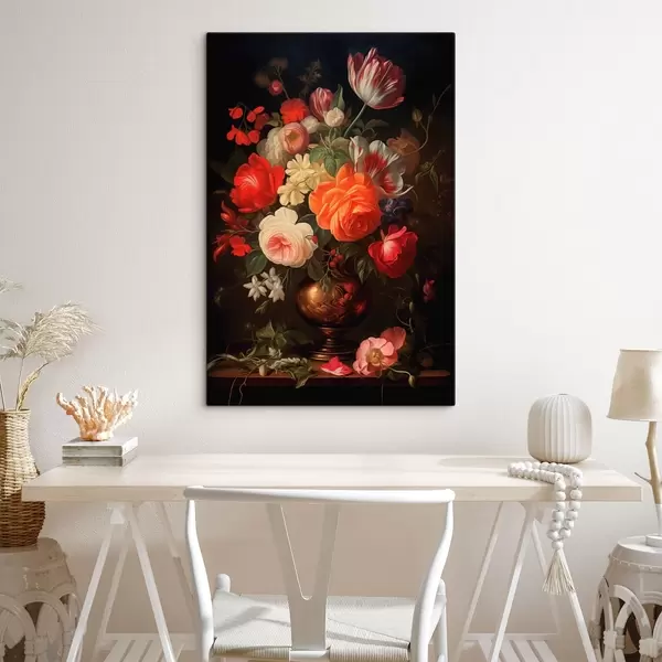 Gemälde Blumenstrauß in einer Vase vor dunklem Hintergrund Art. s48351