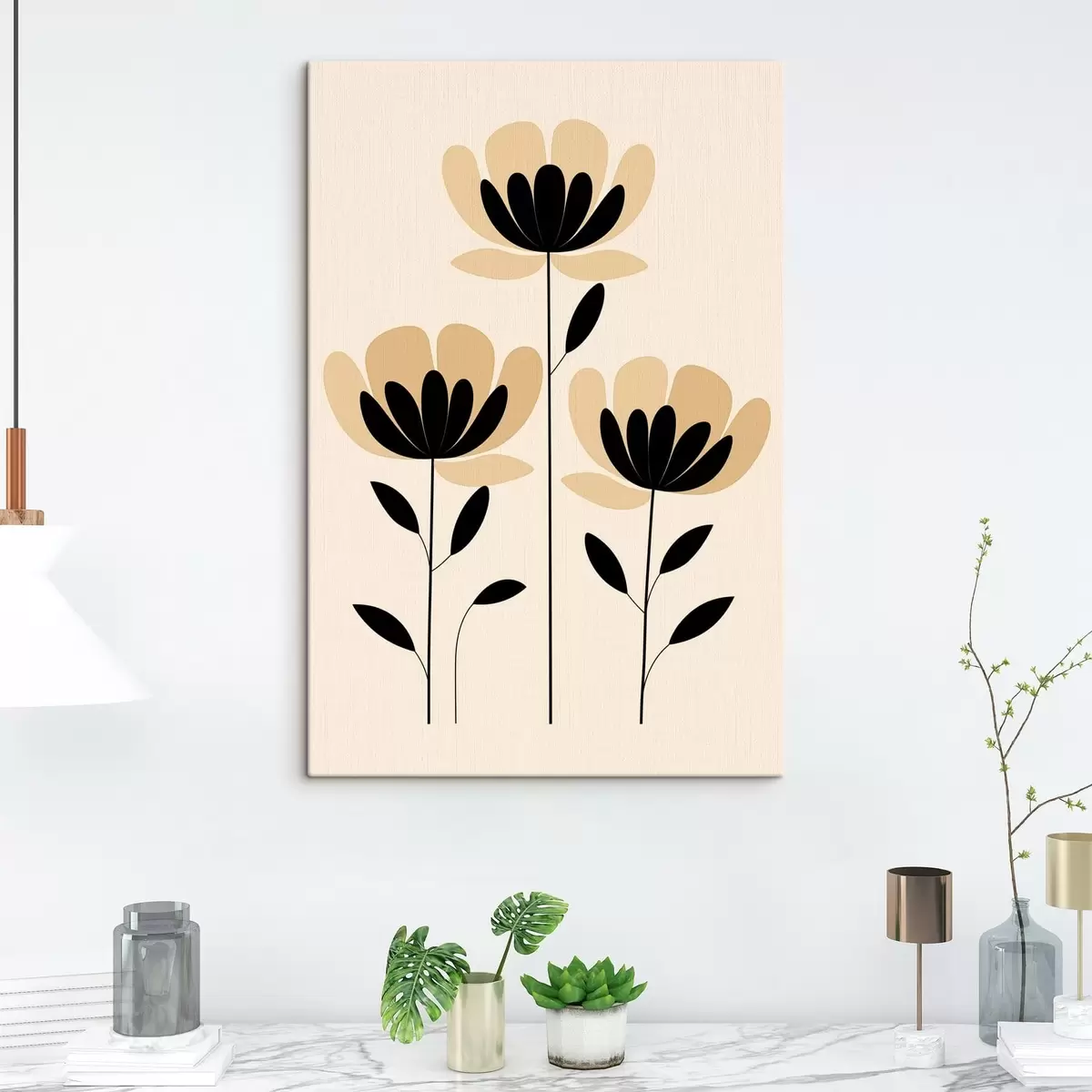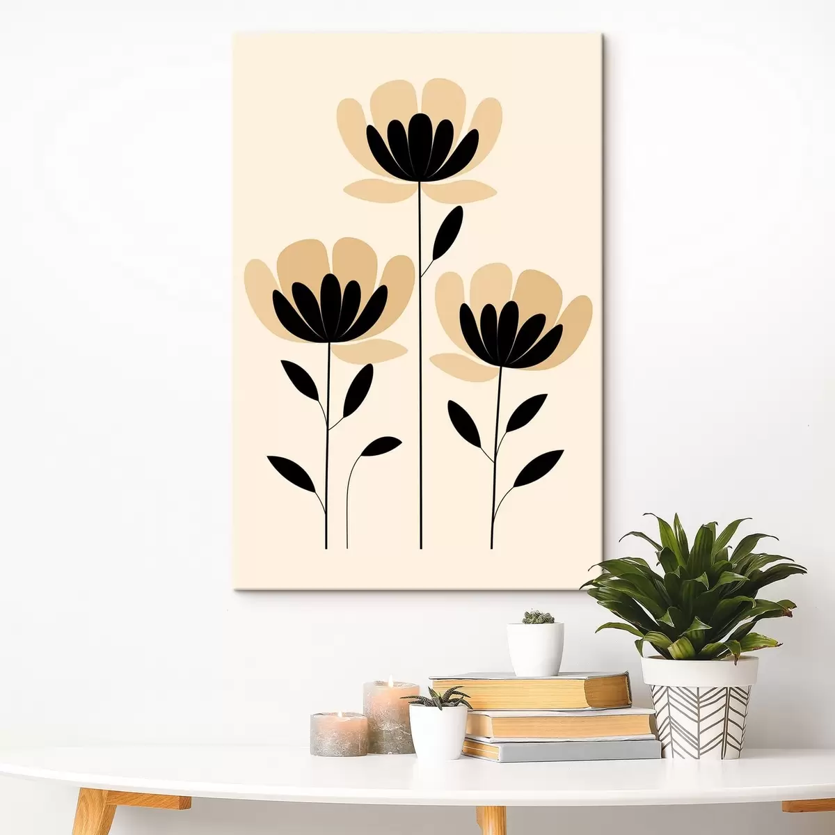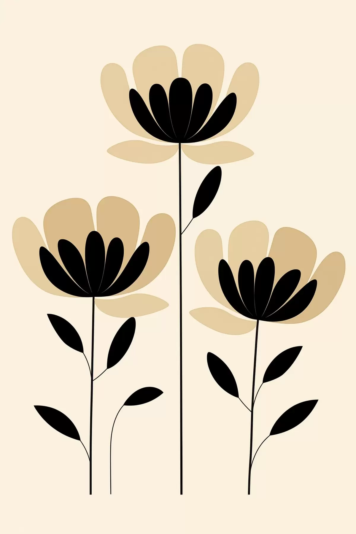Fototapete Minimalistische Blumen in Schwarz und Beige s48353