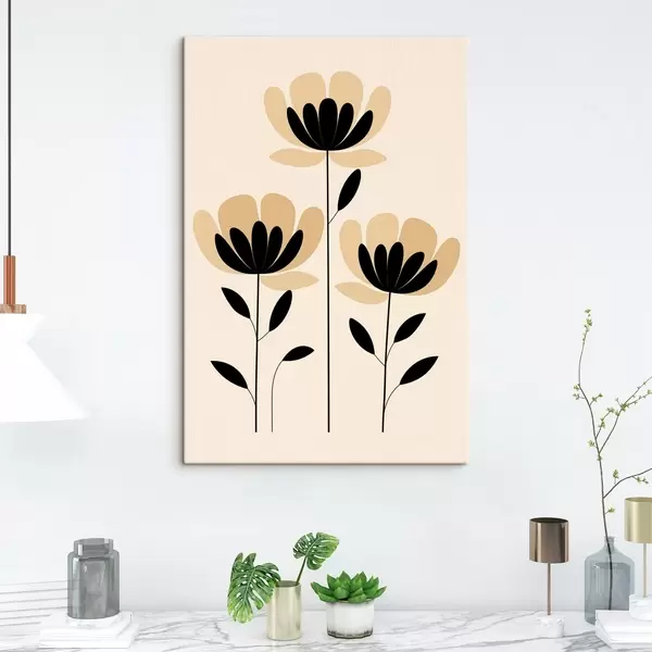 Gemälde Minimalistische Blumen in Schwarz und Beige Art. s48353