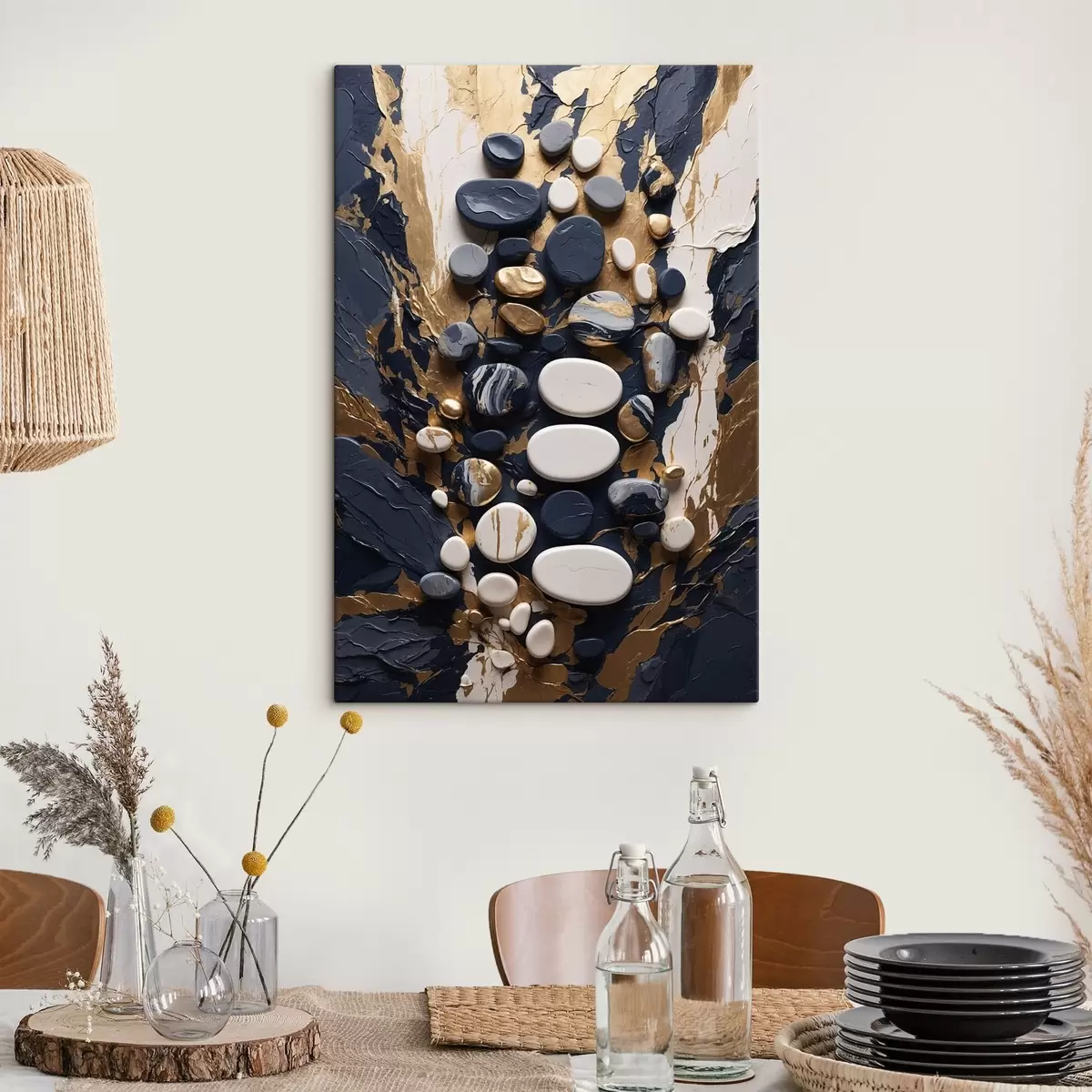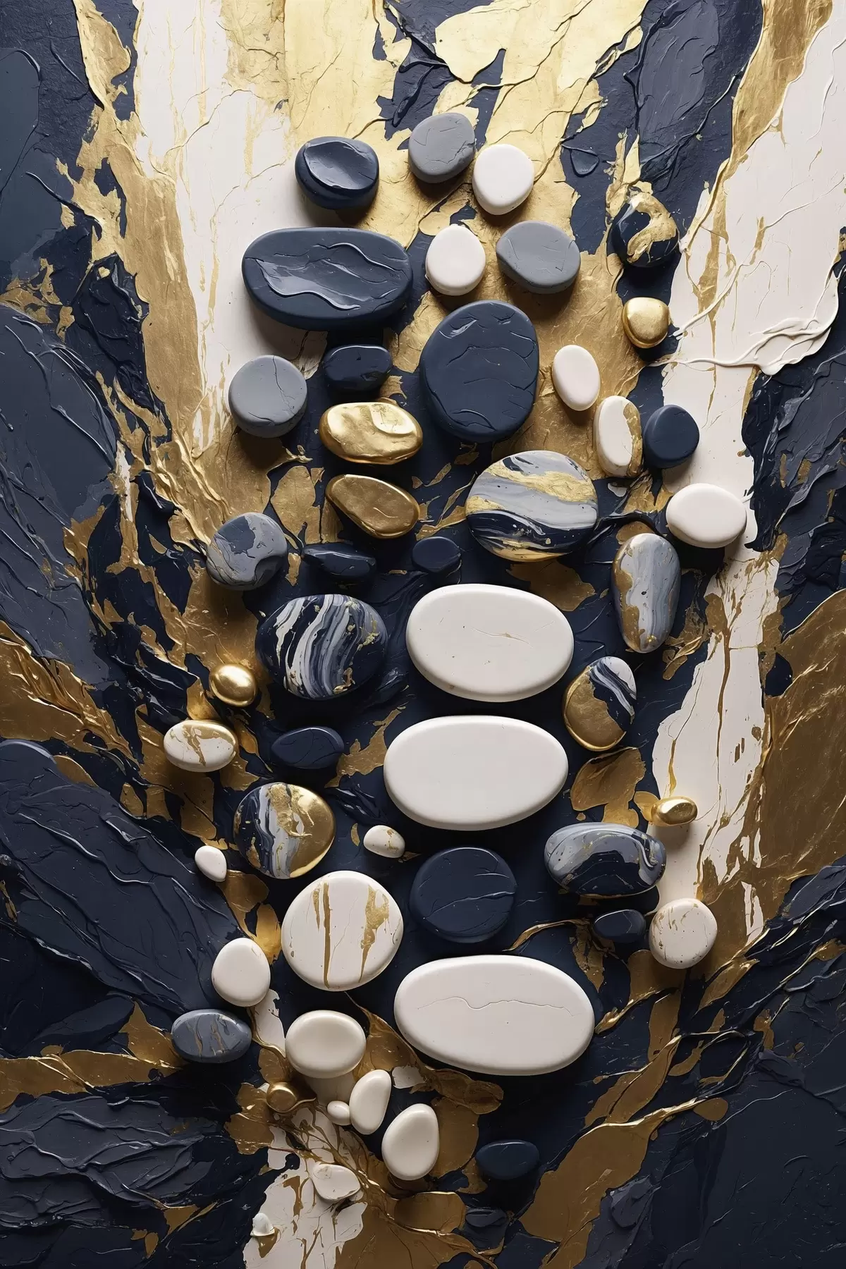 Gemälde Abstrakte Steinkomposition in dunkelblauen Farbtönen Art. s48357