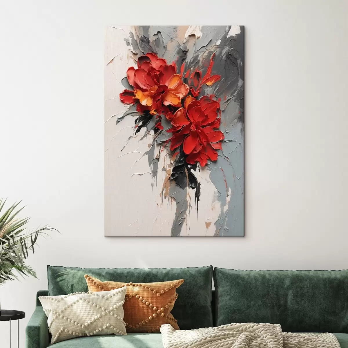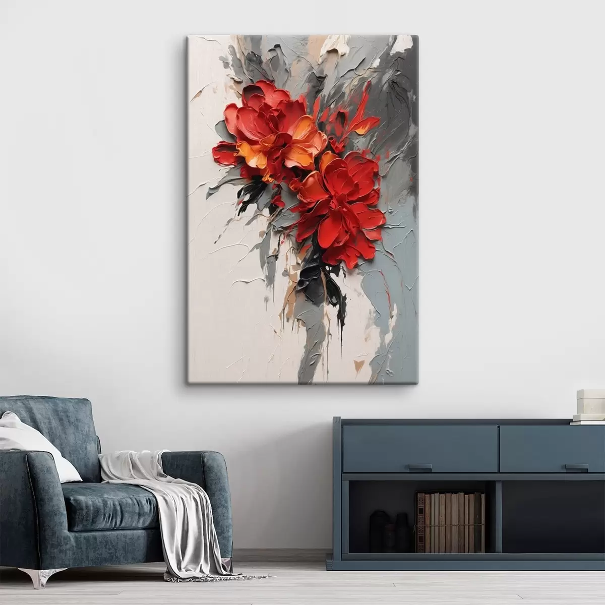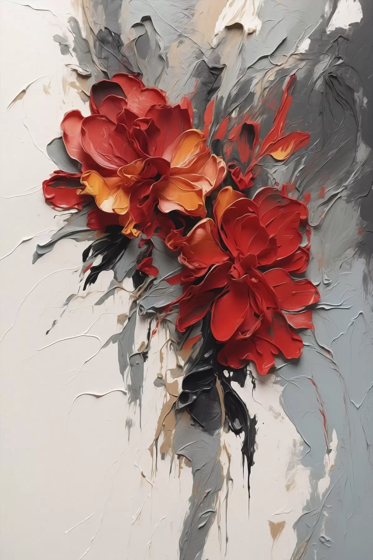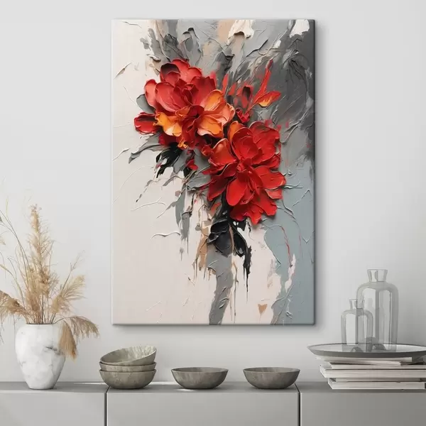 Gemälde Rote Blumen mit strukturierten Strichen auf hellem Hintergrund Art. s48365