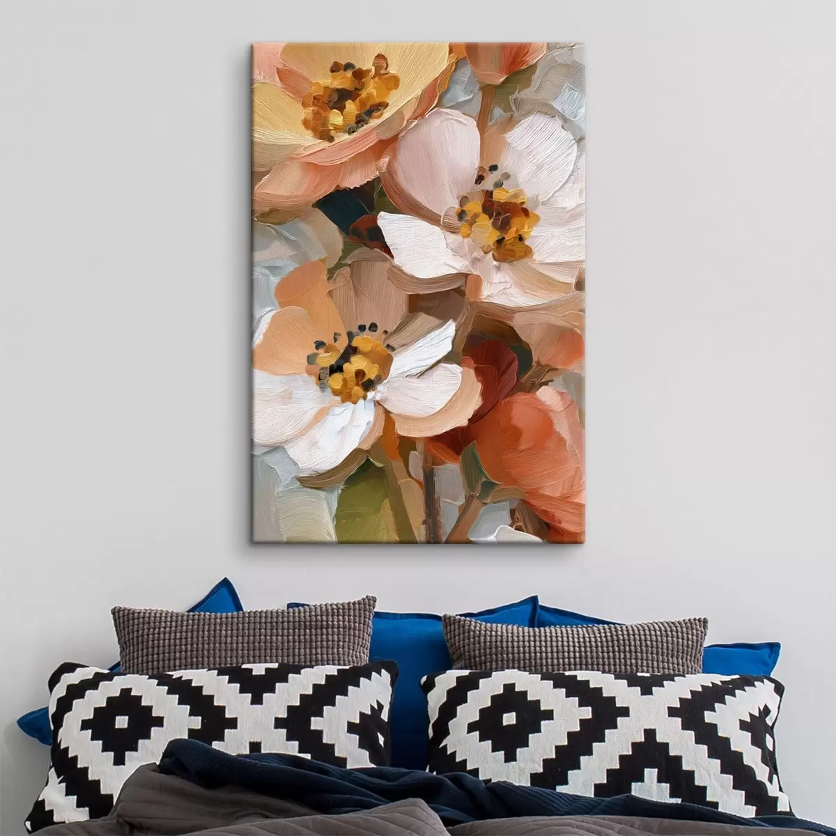 Drei Materialtypen stehen zur Verfügung: Economic Canvas - ein dichtes und haltbares Material für den Digitaldruck, identisch mit Malerleinwand, wasserfeste Oberfläche, realistische Wiedergabe von Details, mittelkörniges Material. Premium Canvas - die Textur ähnelt der einer Malerleinwand (verwobene kleine Fäden). Weiche, detaillierte Wiedergabe des Bildes auf einer matten Oberfläche. Eco-Premium - hochwertiges Gewebe aus 100% Baumwolle. Dank der natürlichen Baumwollfasern ist das Material langlebig und verschleißfest. Hervorragende Farbwiedergabe und Detailtreue.
