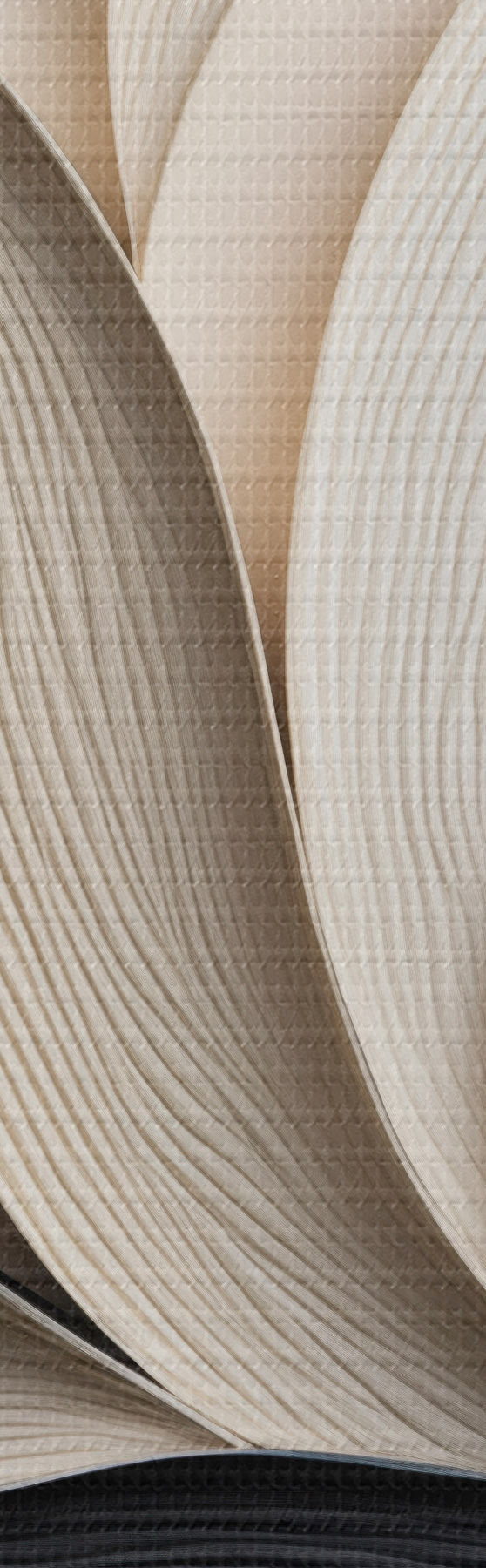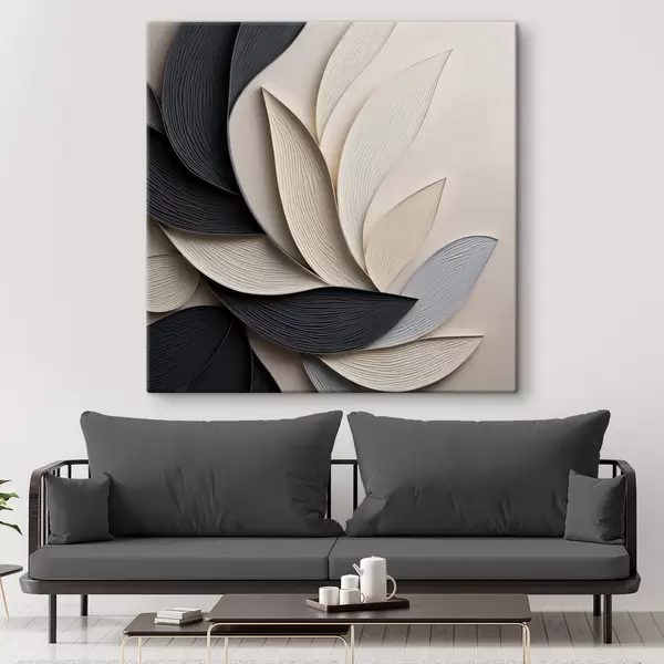 Fototapete Abstrakte Komposition aus übereinanderliegenden Blättern, geschwungenen Formen in Schwarz, Weiß und Beige, strukturierte Kunst s48381