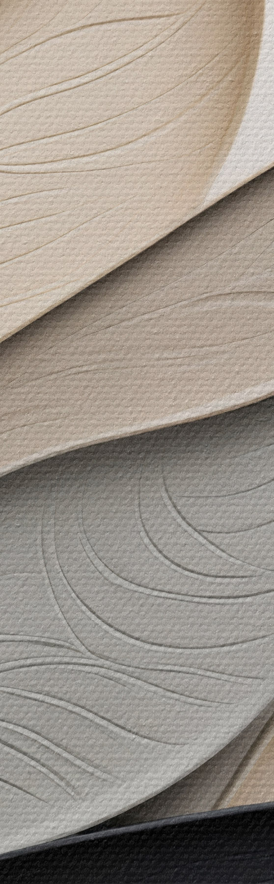 Fototapete Abstrakte Komposition aus übereinanderliegenden Blättern, geschwungenen Formen in Schwarz, Weiß und Beige, strukturierte Kunst s48382