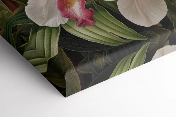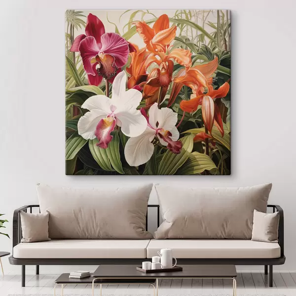 Gemälde Ein Strauß tropischer Blumen, Orchideen mit grünem Laub im Hintergrund Art. s48386