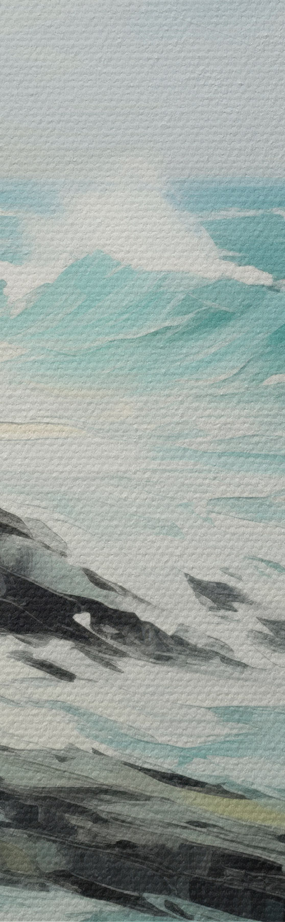 Fototapete Eine felsige Küstenlandschaft mit Wellen unter bewölktem Himmel, im Stil eines Gemäldes s48387