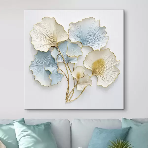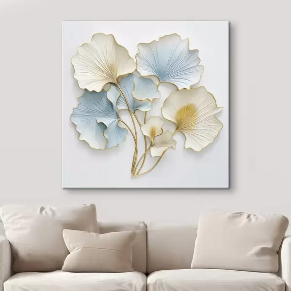 Gemälde Stilisierte Ginkgoblätter mit blauen und gelben Akzenten Art. s48398