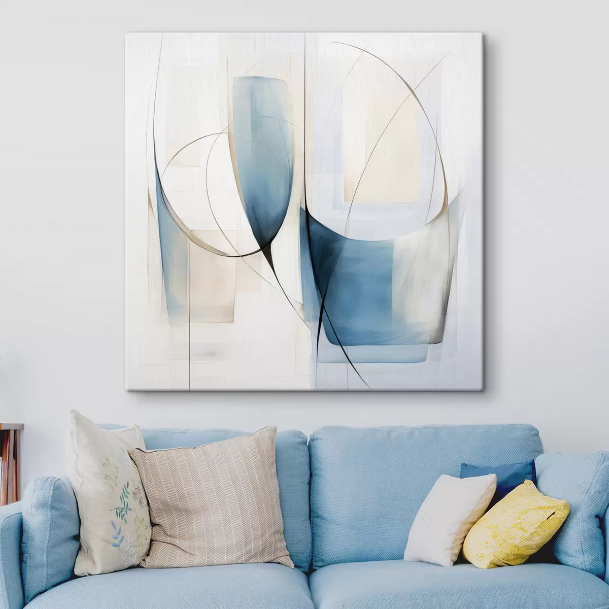 Gemälde Abstrakte, minimalistische Komposition mit blauen und beigen Formen Art. s48403