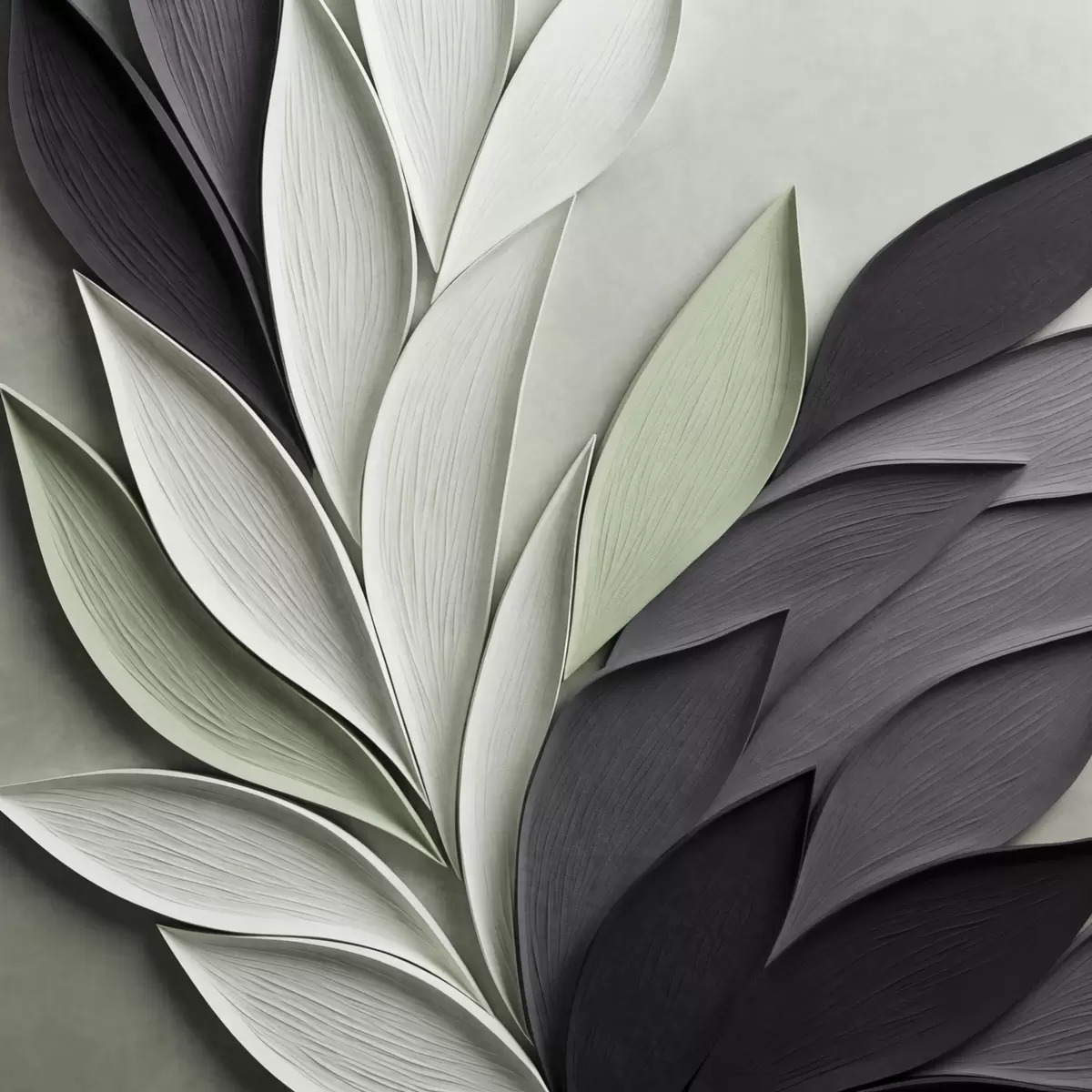 Fototapete Abstrakte, stilisierte Blätter in Grau-, Weiß- und gedämpften Grüntönen s48411