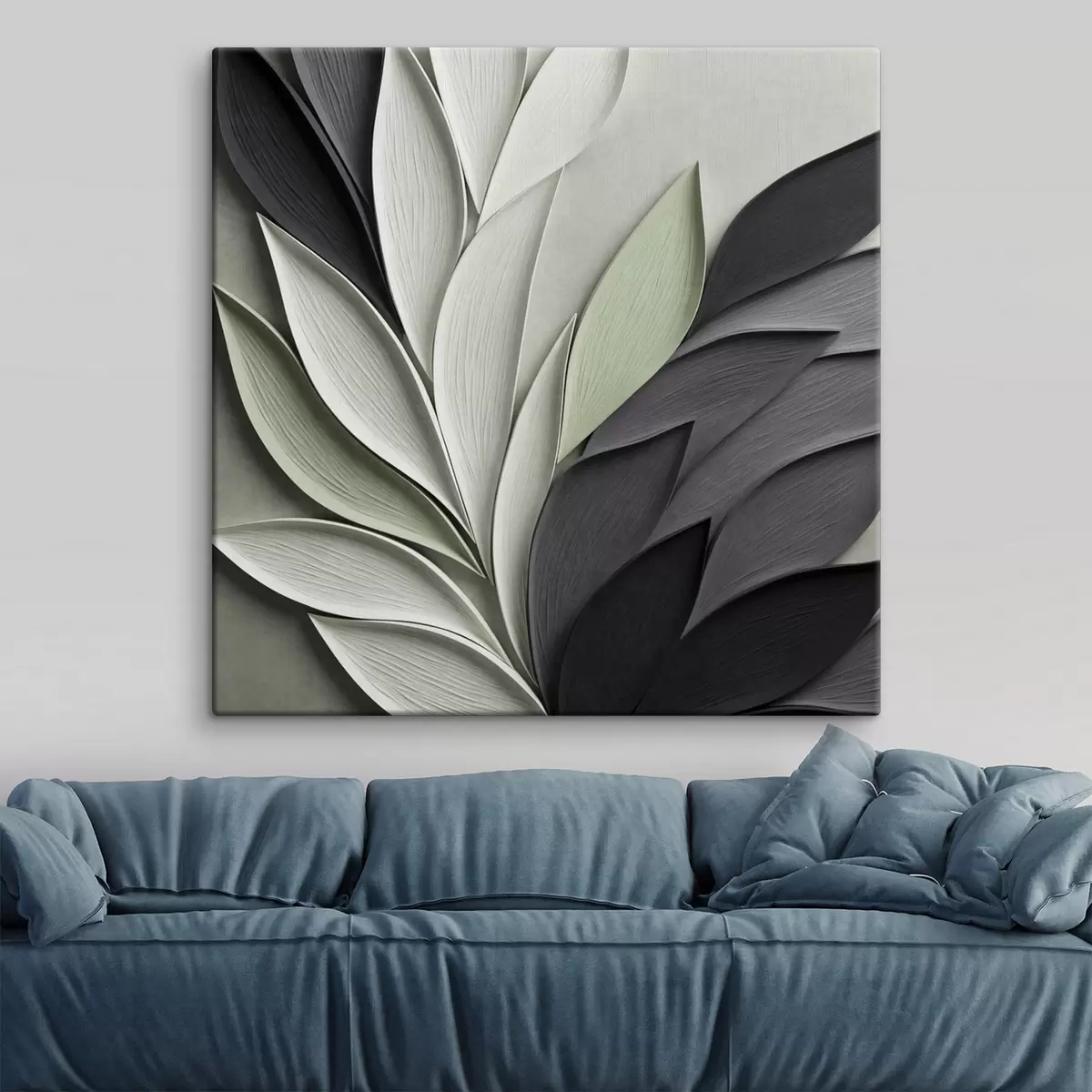 Gemälde Abstrakte, stilisierte Blätter in Grau-, Weiß- und gedämpften Grüntönen Art. s48411