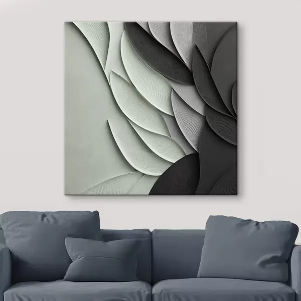 Gemälde Abstrakte, stilisierte Blätter in Grau-, Weiß- und gedämpften Grüntönen Art. s48412
