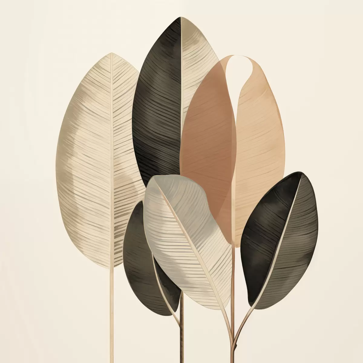 Gemälde Hohe Pflanzen mit ovalen Blättern in gedeckten Farbtönen und abstrakten rechteckigen Formen Art. s48414