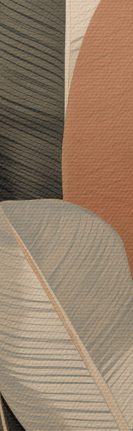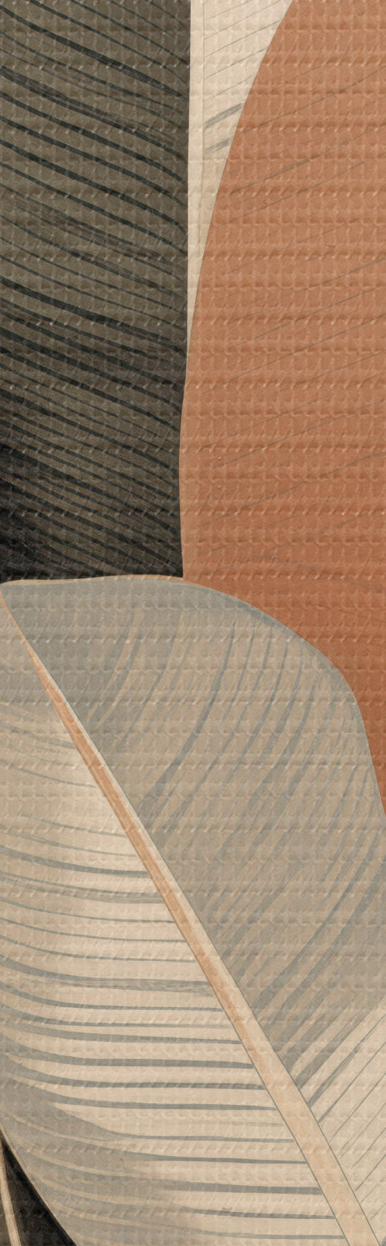Fototapete Hohe Pflanzen mit ovalen Blättern in gedeckten Farbtönen und abstrakten rechteckigen Formen s48414