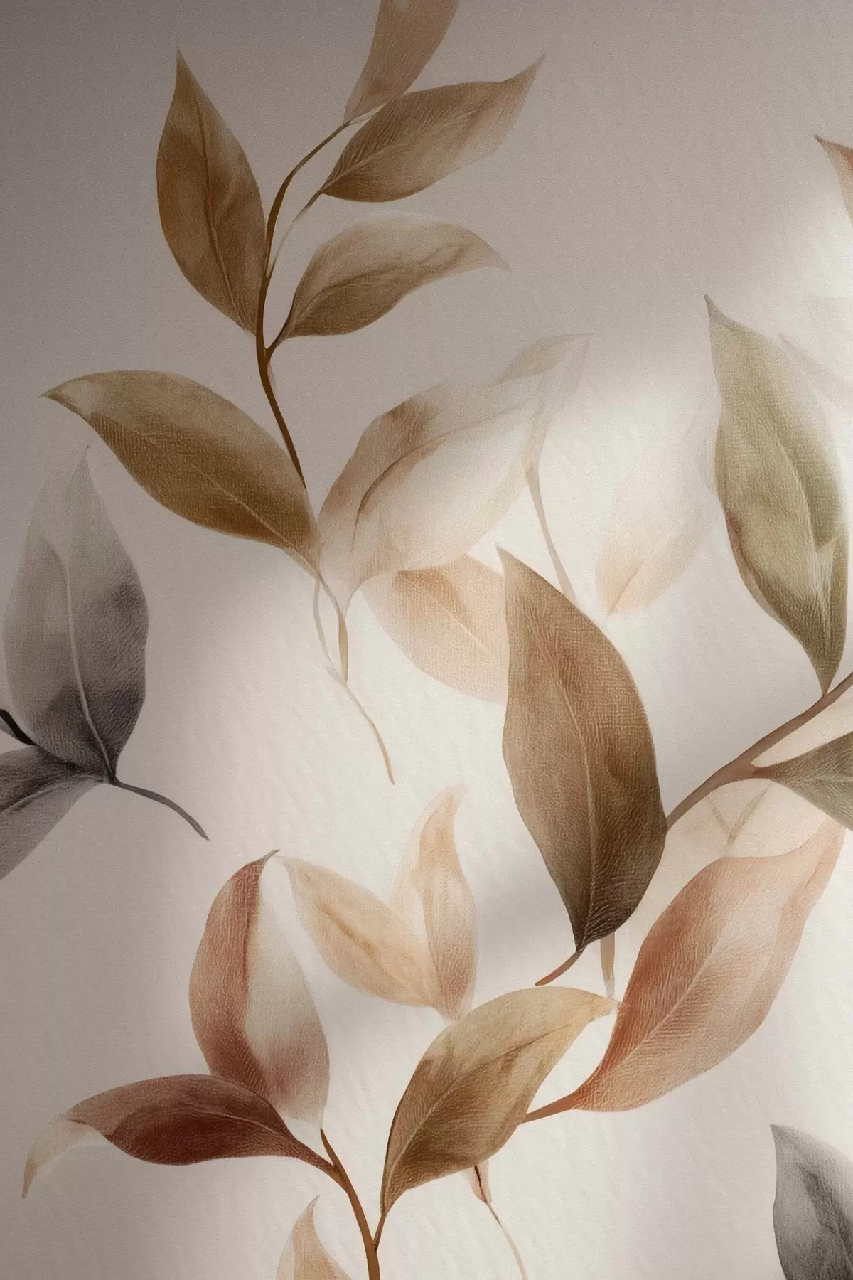 Fototapete Malerei mit Blättern, beigen Zweigen, Minimalismus, skandinavischer Stil s48479