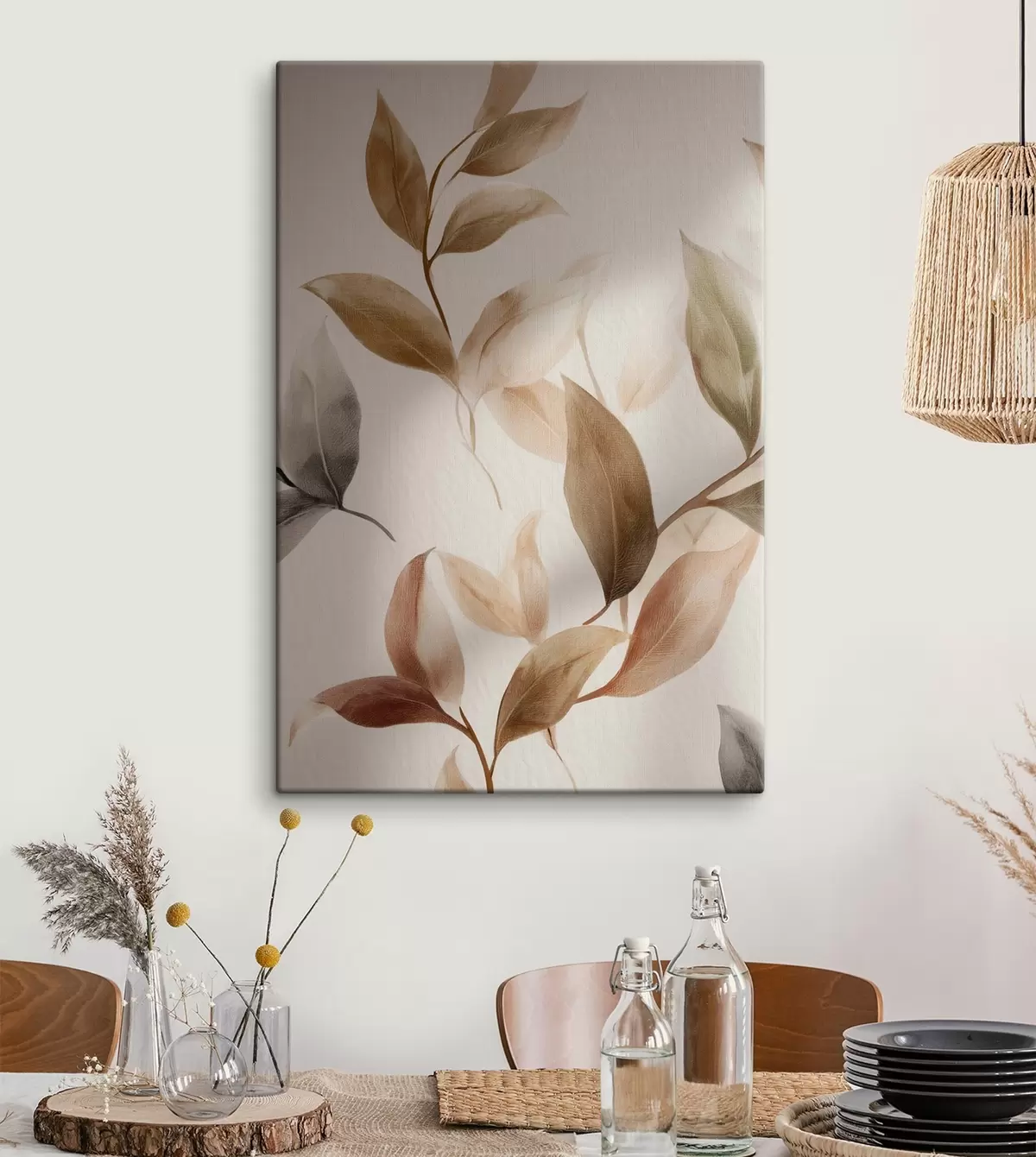 Gemälde Malerei mit Blättern, beigen Zweigen, Minimalismus, skandinavischer Stil Art. s48479