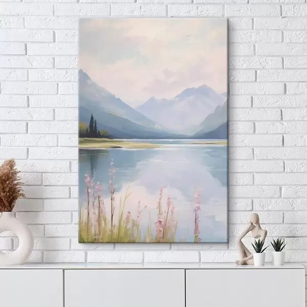 Fototapete See in der Nähe der Berge Nachahmung der Malerei s48503