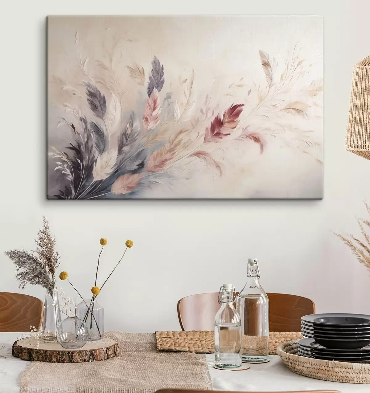 Drei Materialtypen stehen zur Verfügung: Economic Canvas - ein dichtes und haltbares Material für den Digitaldruck, identisch mit Malerleinwand, wasserfeste Oberfläche, realistische Wiedergabe von Details, mittelkörniges Material. Premium Canvas - die Textur ähnelt der einer Malerleinwand (verwobene kleine Fäden). Weiche, detaillierte Wiedergabe des Bildes auf einer matten Oberfläche. Eco-Premium - hochwertiges Gewebe aus 100% Baumwolle. Dank der natürlichen Baumwollfasern ist das Material langlebig und verschleißfest. Hervorragende Farbwiedergabe und Detailtreue.