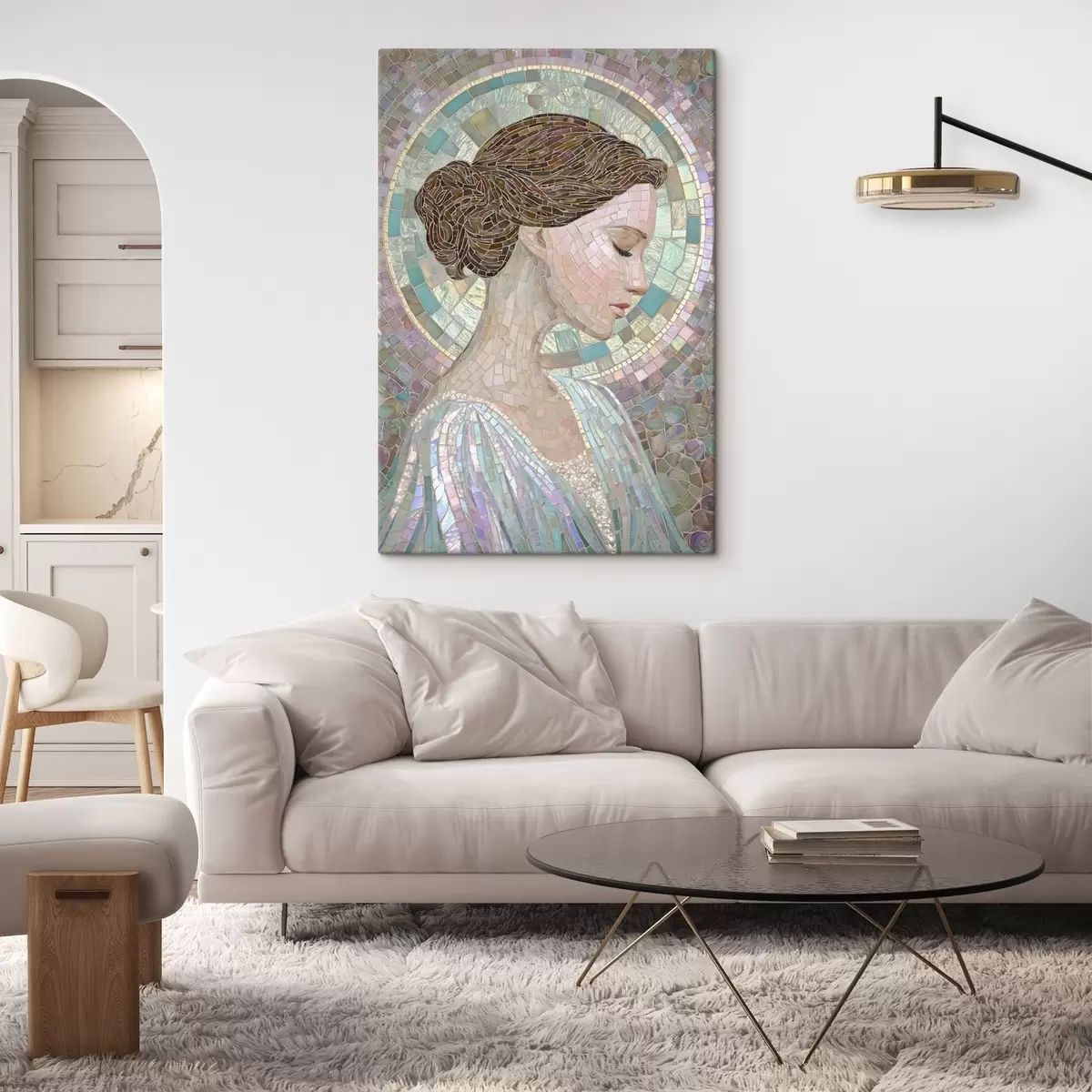 Gemälde das Profil einer Frau im Stil eines Buntglasfensters Art. s48551