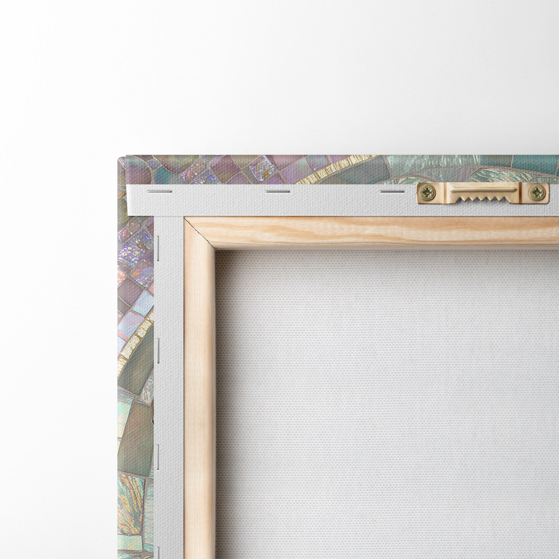 Um die Leinwand auf Keilrahmen zu spannen, ohne das Bild zu beschädigen, verwenden wir ein gespiegeltes Bild.
