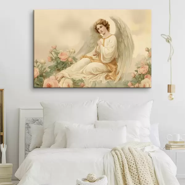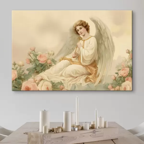 Gemälde ein Engel inmitten von Blumen im Stil eines Ölgemäldes Art. s48554